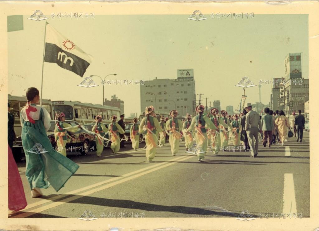 1974년 제15회 전국민속예술경연대회 등록번호 00005775 생산일자 1974.10.23 생산지역 부산광역시 생산자 변용수 수집처 변용수 소장자 변용수 내용 1974년 부산에서 개최된 제15회 전국민속예술경연대회의 모습이다. 이 대회에 춘천에서는 밭치리 거리제가 참여하였다. 이 사진은 전국민속예술경연대회 중 길놀이에 참여한 어린이농악대의 한 장면이다. 자세히 보기 닫기 사용안내 비상업적 이용만 가능|©춘천디지털기록관 상업적 사용·수정·재배포는 저작권자 동의 필요 다운로드 목록보기