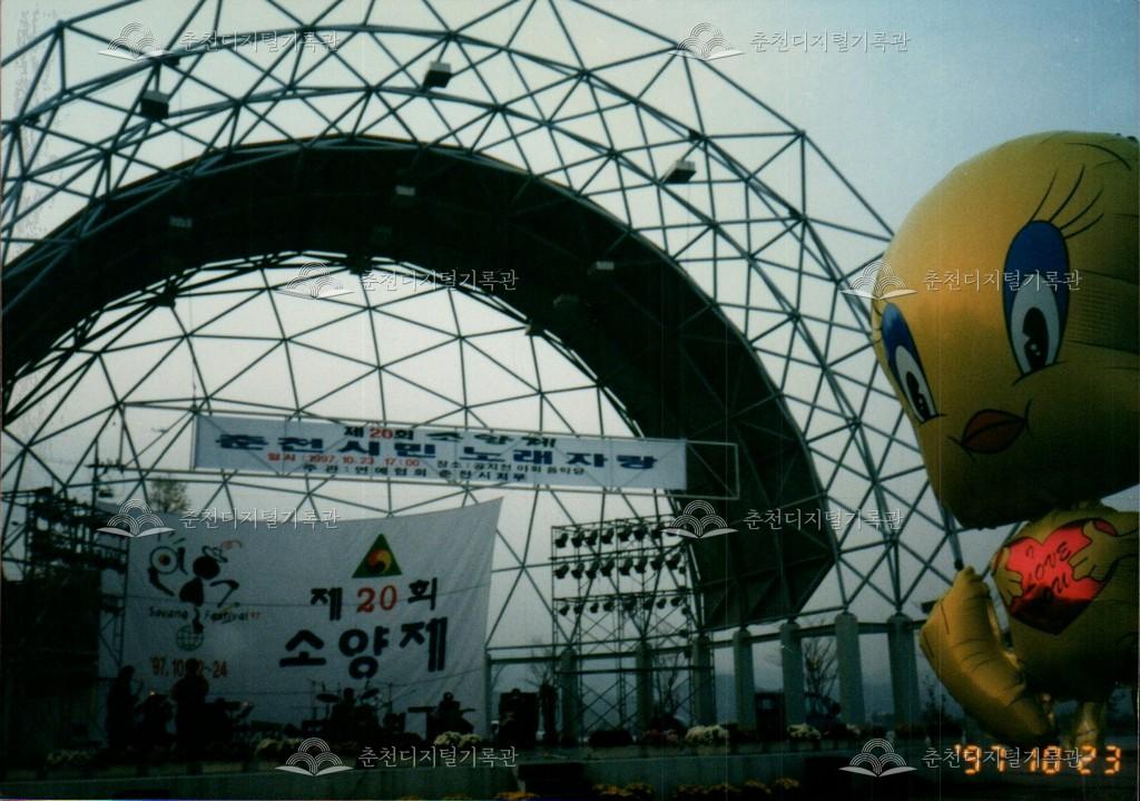 1997년 제20회 소양제(현재 소양강문화제)의 춘천시민 노래자랑 사진이다. 공지천 시민공원(현재 의암공원) 야외음악당 무대에서 진행되었다.