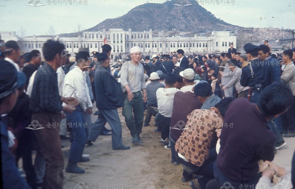 제2회 개나리문화제 줄다리기 등록번호 00004898 생산일자 1967.04.07 생산지역 춘천 소양동 생산자 춘천시청 수집처 춘천시청 소장자 춘천시청 내용 춘천 공설운동장에서 열린 개나리 호수제의 줄다리기 경기장이다. 마을 대표로 출전한 선수들은 승리를 위해 영차! 영차!를 외치며 온힘을 다해 줄을 당기고 주민들은 힘찬 응원으로 축제를 만끽하고 있다. [출처] 『봄고을의 향연(2021)』 참고 자세히 보기 닫기 사용안내 비상업적 이용만 가능|©춘천디지털기록관 상업적 사용·수정·재배포는 저작권자 동의 필요 다운로드 목록보기