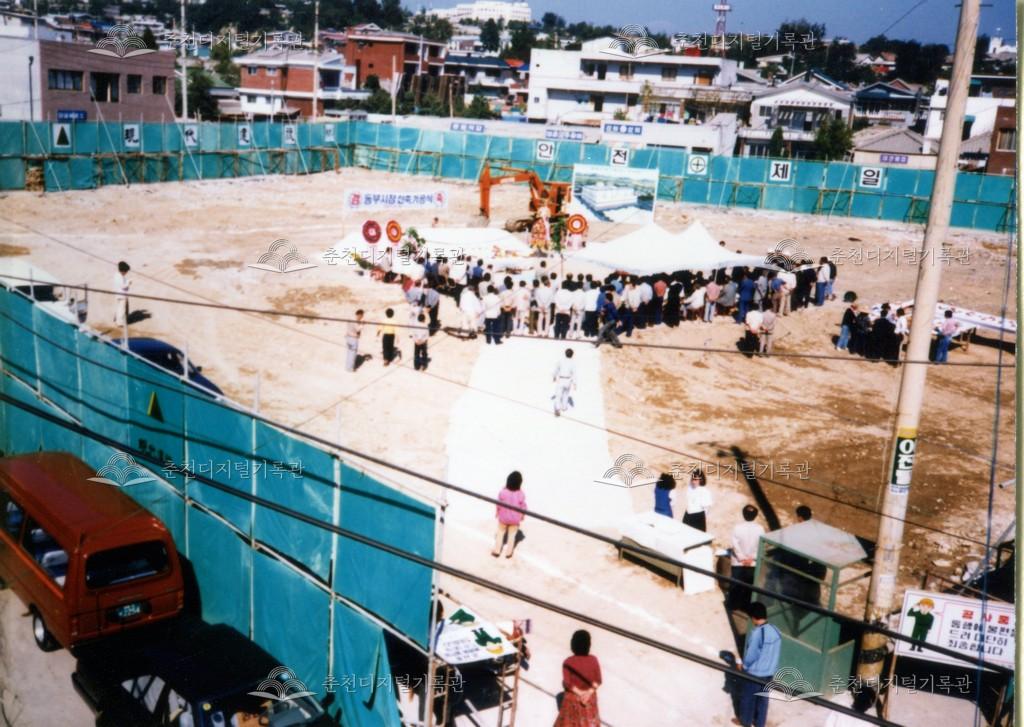 동부시장 신축 기공식 등록번호 00004946 생산일자 1987.09.10 생산지역 춘천시 운교동 생산자 춘천동부시장 수집처 춘천동부시장사업협동조합 소장자 춘천동부시장사업협동조합 내용 동부시장 신축 기공식 현장이다. KBS, MBC 취재 차량이 보이고, 멀리 운교동성당도 보인다. 동부시장 신축공사 조감도와 첫 삽을 뜨는 관계자의 모습 등이 보인다. 자세히 보기 닫기 사용안내 비상업적 이용만 가능|©춘천디지털기록관 상업적 사용·수정·재배포는 저작권자 동의 필요 다운로드 목록보기