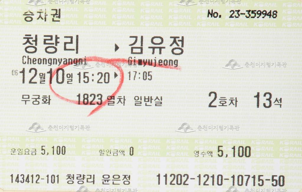 무궁화호 승차권 : 청량리-김유정