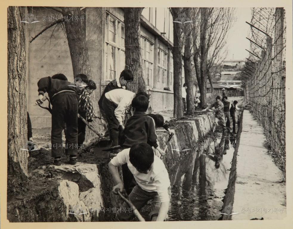 화단 및 배수로 정비 등록번호 00005341 생산일자 1975 생산지역 춘천시 근화동 생산자 근화초등학교 수집처 근화초등학교 소장자 근화초등학교 내용 1975년 근화국민학교(현재 근화초등학교) 학생들이 화단과 배수로를 정비하고 있다. 초등학생이 삽질하는 모습이 보인다. 사용안내 비상업적 이용만 가능|©춘천디지털기록관 상업적 사용·수정·재배포는 저작권자 동의 필요 다운로드 목록보기