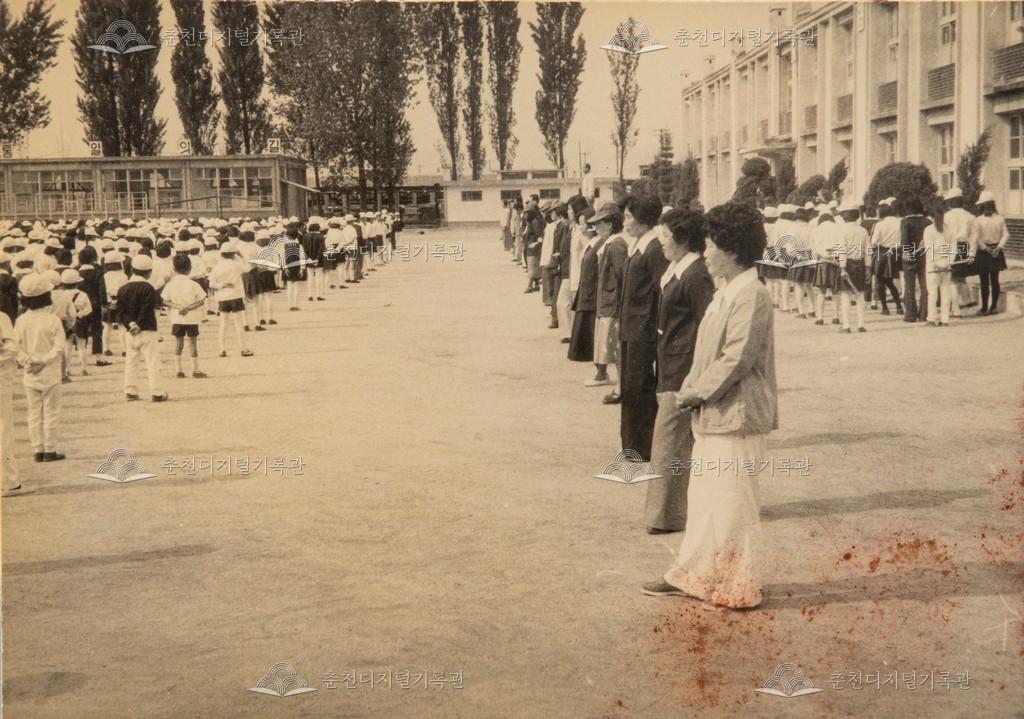 1976년 근화국민학교(현재 근화초등학교) 애국조회 모습이다.