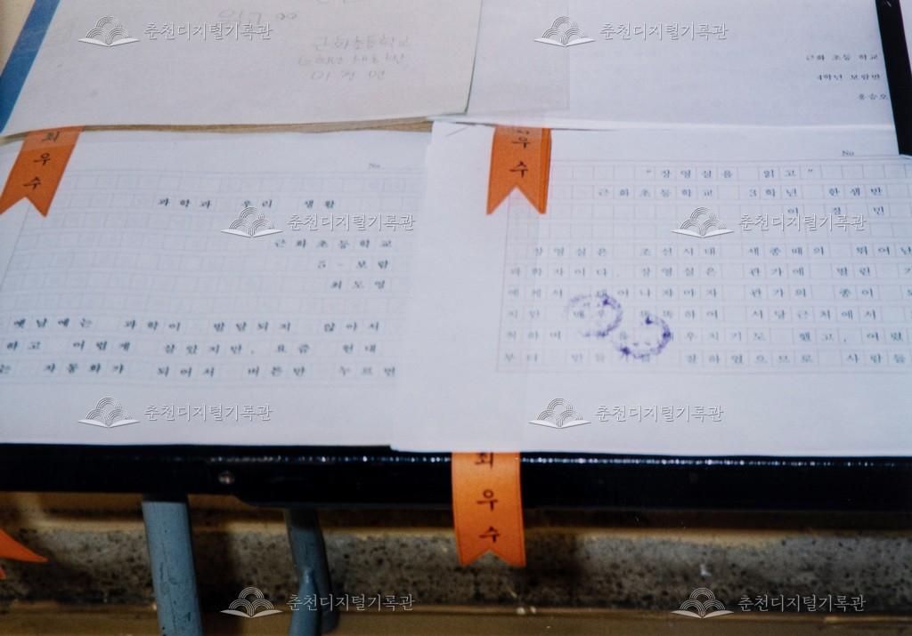 과학 독후감 대회 등록번호 00005715 생산일자 2003.04.10 생산지역 춘천시 근화동 생산자 근화초등학교 수집처 근화초등학교 소장자 근화초등학교 내용 2003년 근화초등학교 과학 독후감 대회 수상작들이 전시되어 있다. 사용안내 비상업적 이용만 가능|©춘천디지털기록관 상업적 사용·수정·재배포는 저작권자 동의 필요 다운로드 목록보기
