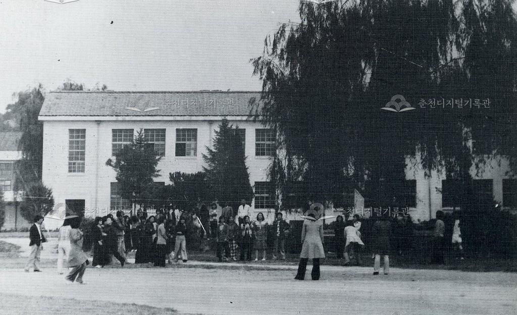 1970년대 춘천교육대학(현재 춘천교육대학교)의 교내 체육대회 사진이다.