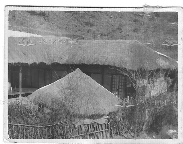 품안리 초가집 등록번호 00005916 생산일자 미상 생산지역 춘천시 동면 생산자 권오신 수집처 권오신 소장자 권오신 내용 동면 품안리 이장의 주택 모습이다. 초가집과 나무울타리가 보인다. 사용안내 비상업적 이용만 가능|©춘천디지털기록관 상업적 사용·수정·재배포는 저작권자 동의 필요 다운로드 목록보기