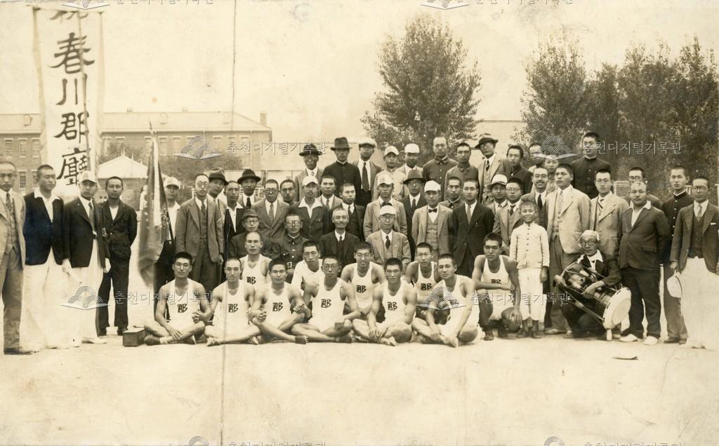 일제강점기 춘천군(현재 춘천시) 체육대회에 참가한 춘천군청(현재 춘천시청) 선수 및 직원 단체 사진이다. 당시 춘천지역에서는 춘천군 체육협회가 주최하여 정기적으로 춘천고등보통학교(현재 춘천고등학교) 운동장에서 군민 체육대회를 개최하였다. 춘천 관내 학교, 면, 정(町 : 지금의 동), 도청 각과, 직속기관 등 행정기관이 참여하였다. 주 종목은 육상 경기였다.