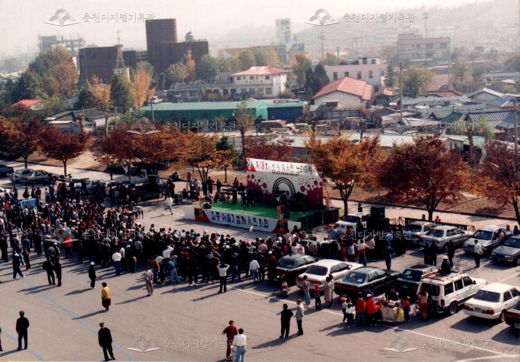 제18회 소양제 시민노래자랑 사진 등록번호 00002831 생산일자 1995.10 생산지역 춘천시 온의동 생산자 춘천문화원 수집처 춘천문화원 소장자 춘천학연구소 내용 1995년 제18회 소양제(현재 소양강문화제)의 시민노래자랑 사진이다. 춘천종합운동장(공설운동장) 주차장에서 진행되었다. 사용안내 비상업적 이용만 가능|©춘천디지털기록관 상업적 사용·수정·재배포는 저작권자 동의 필요 다운로드 목록보기