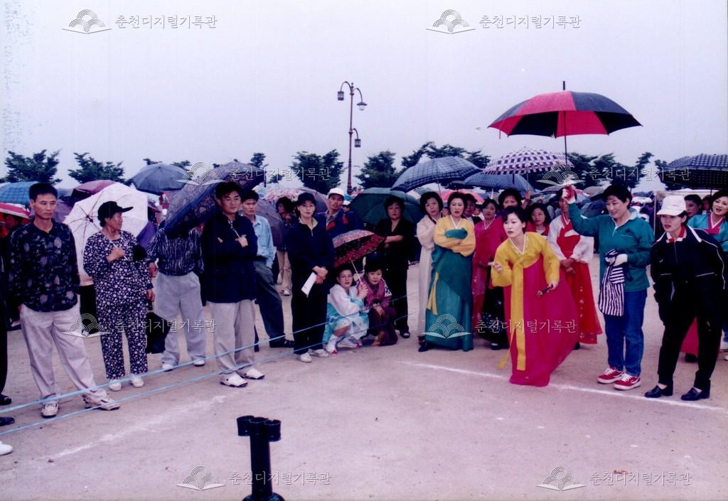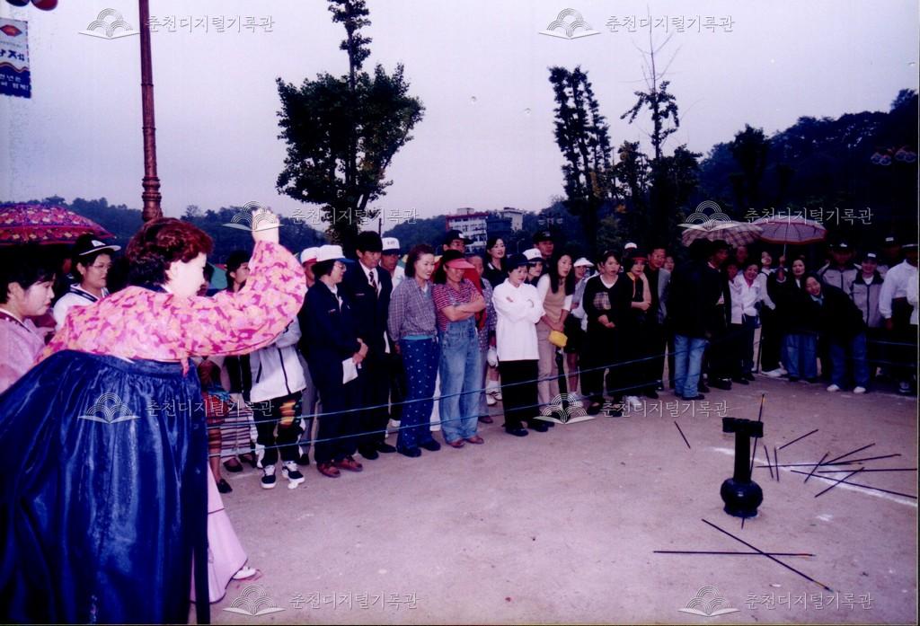 1999년 제22회 소양제(현재 소양강문화제)의 민속놀이 사진이다. 투호놀이를 하는 모습이다.