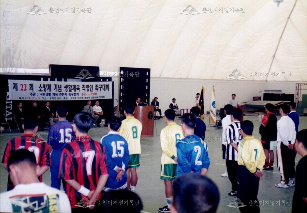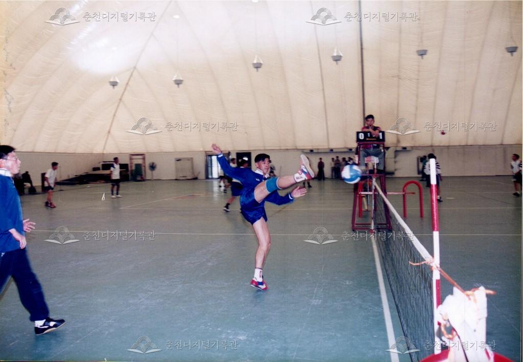 제22회 소양제 족구 대회 사진 등록번호 00002943 생산일자 1999.10.02 생산지역 춘천시 삼천동 생산자 춘천문화원 수집처 춘천문화원 소장자 춘천학연구소 내용 1999년 제22회 소양제(현재 소양강문화제)의 직장인 족구대회 사진이다. 공지천 쉼터(현재 의암공원 내)에서 10월 2일, 3일간 진행되었다. 자세히 보기 닫기 사용안내 비상업적 이용만 가능|©춘천디지털기록관 상업적 사용·수정·재배포는 저작권자 동의 필요 다운로드 목록보기