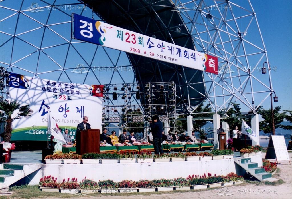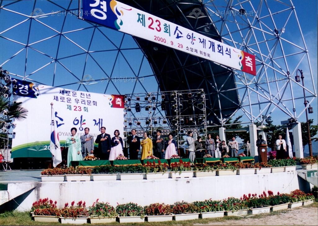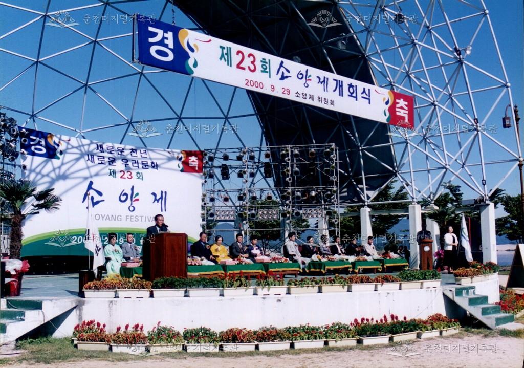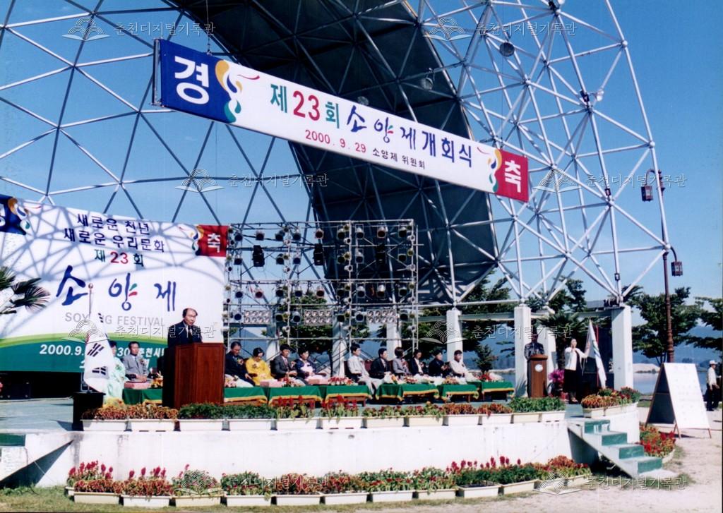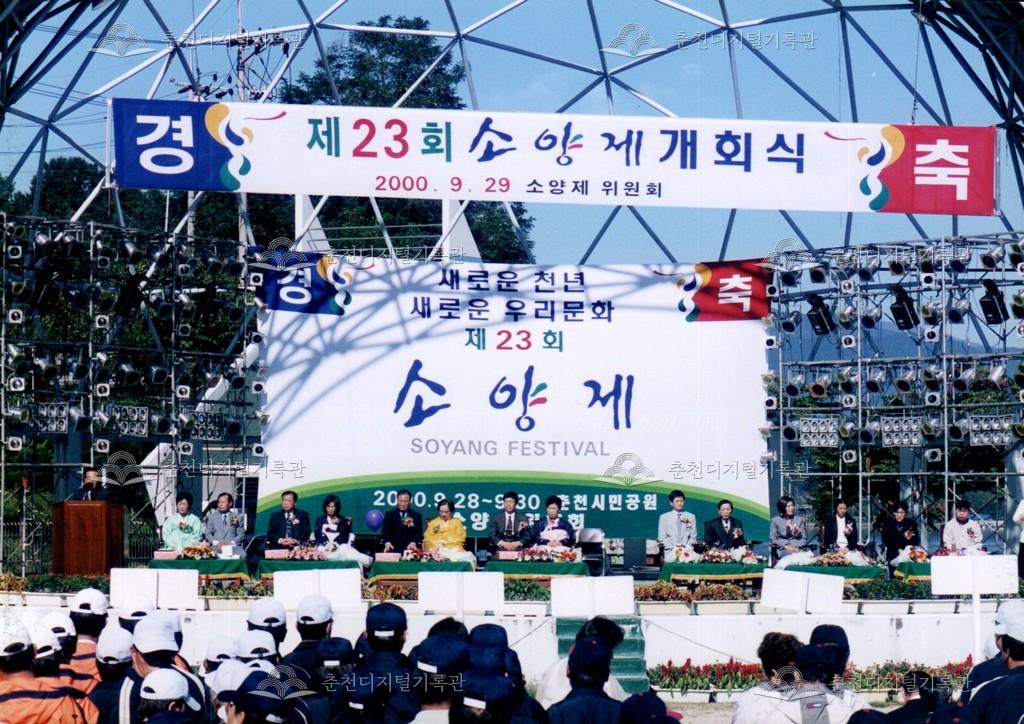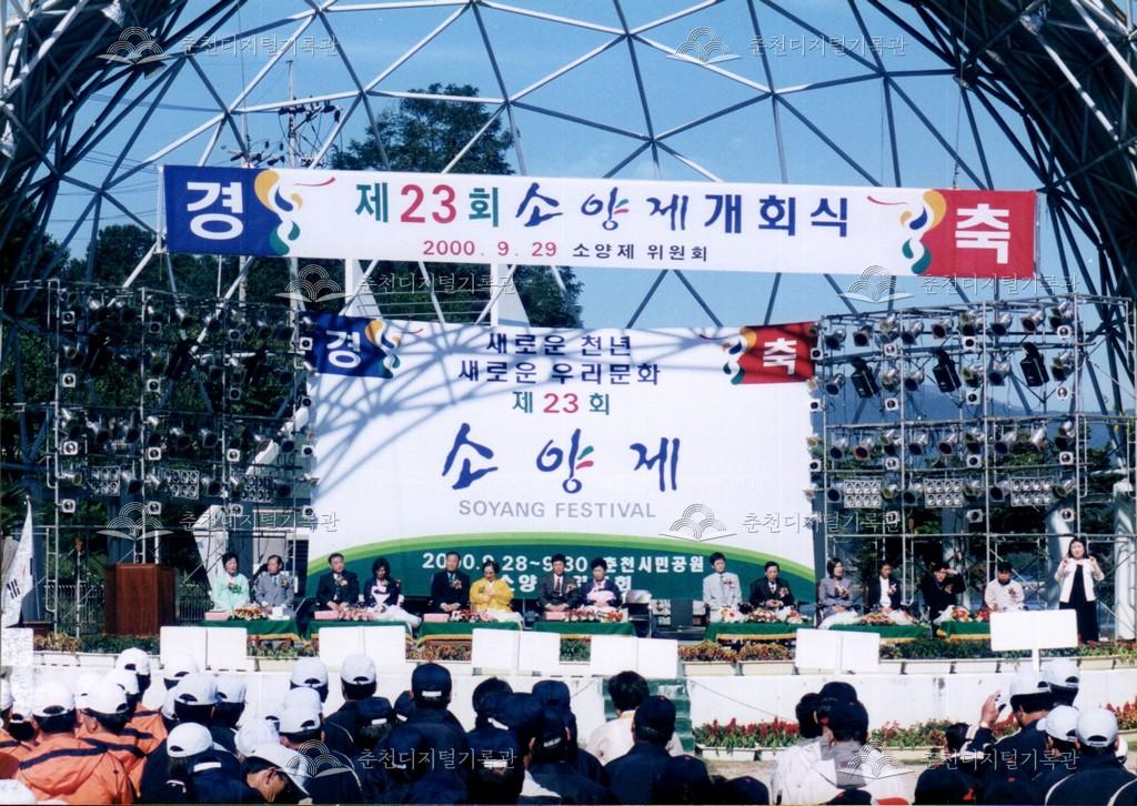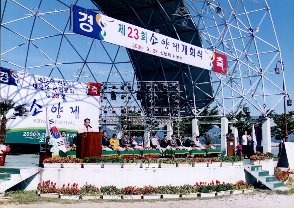 2000년 제23회 소양제(현재 소양강문화제)의 개회식 사진이다. 공지천 시민공원(현재 의암공원) 야외무대에서 진행되었다.
