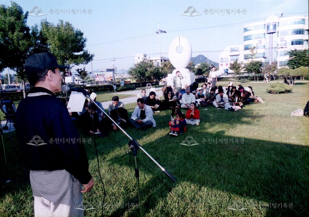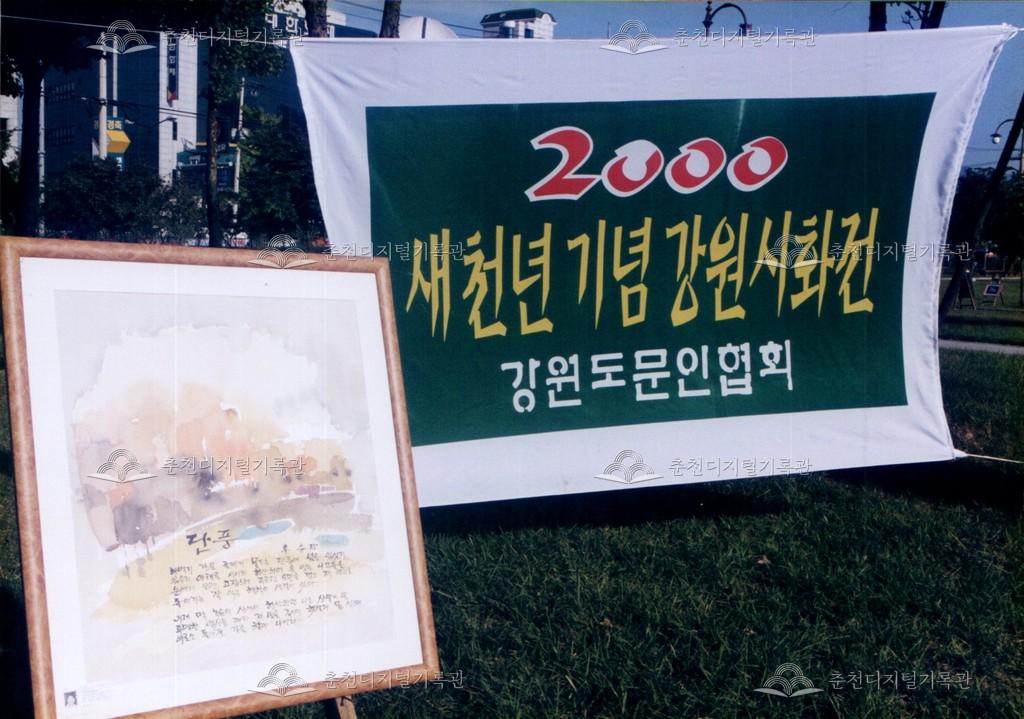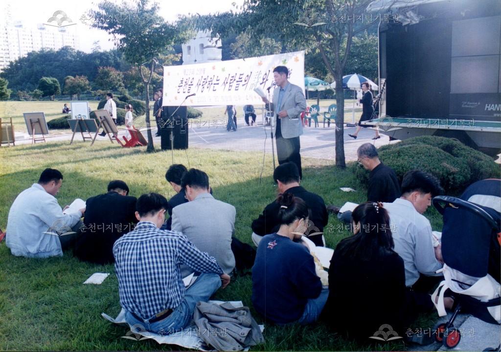 제23회 소양제 새천년 기념 강원시화전 사진 등록번호 00002981 생산일자 2000.09.30 생산지역 춘천시 근화동 생산자 춘천문화원 수집처 춘천문화원 소장자 춘천학연구소 내용 2000년 제23회 소양제(현재 소양강문화제) 중 2000 새천년 기념 강원시화전 사진이다. 강원도문인협회 주최로 근화동 조각공원에서 진행되었다. 자세히 보기 닫기 사용안내 비상업적 이용만 가능|©춘천디지털기록관 상업적 사용·수정·재배포는 저작권자 동의 필요 다운로드 목록보기