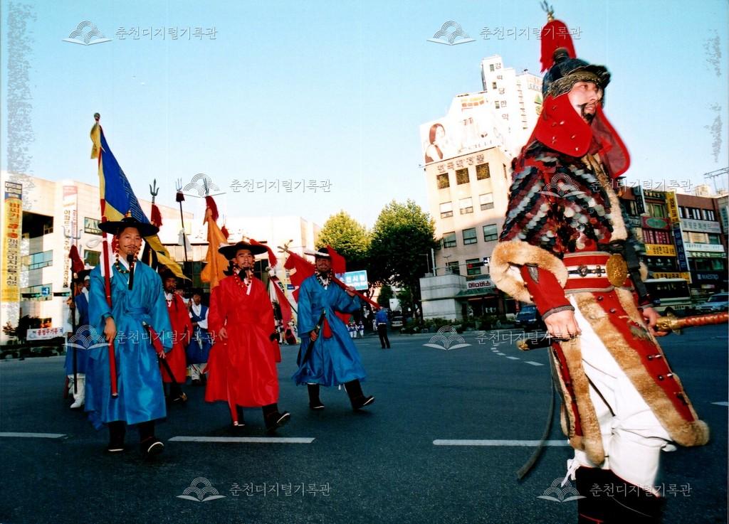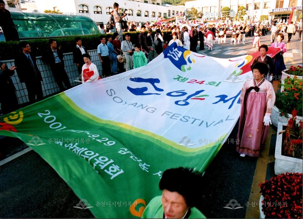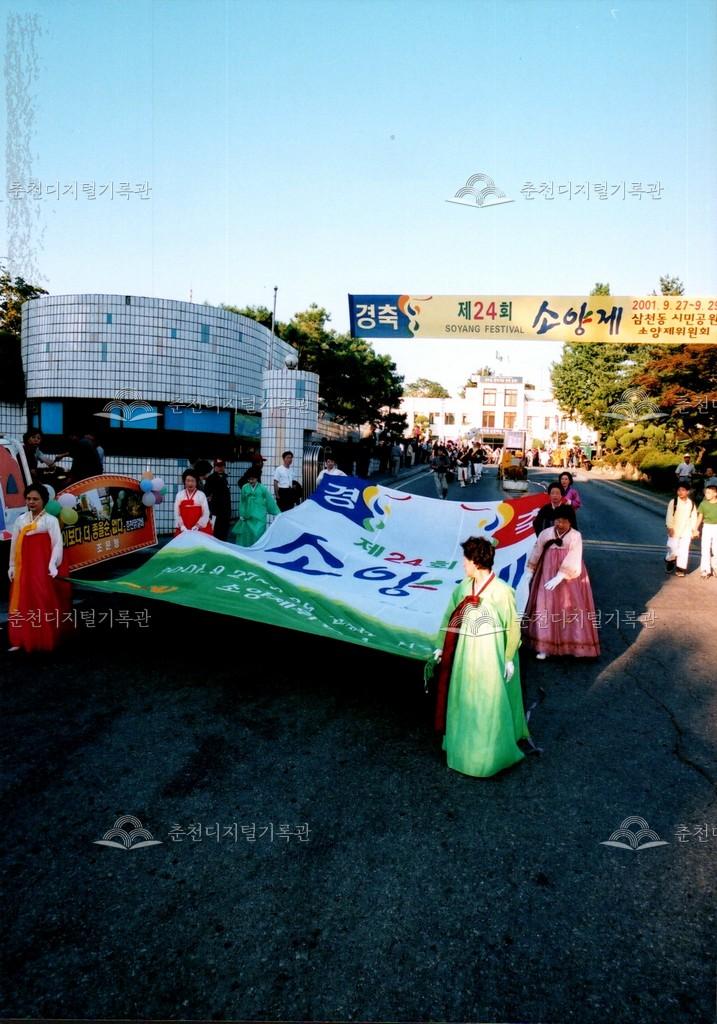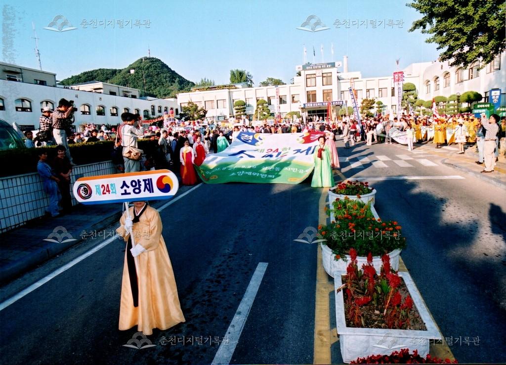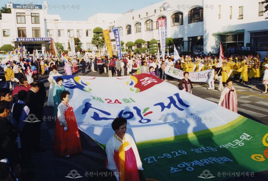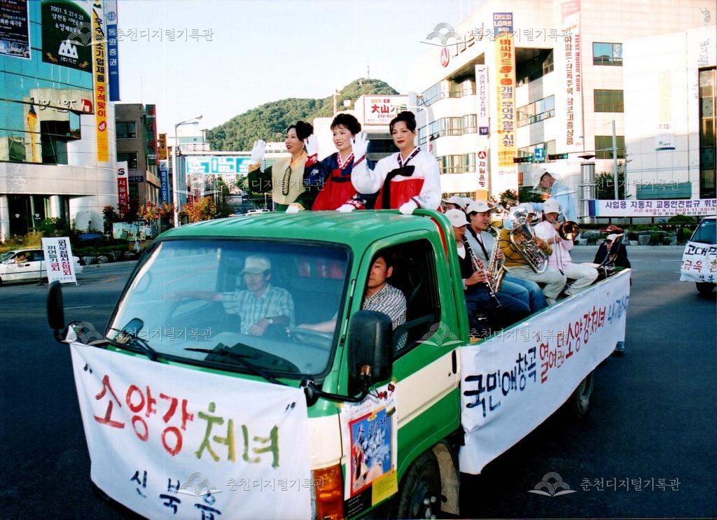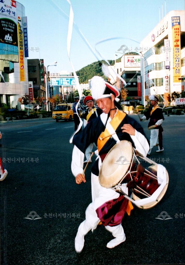 2001년 제24회 소양제(현재 소양강문화제)의 거리행진 사진이다. 춘천시청에서 공지천 시민공원(현재 의암공원)까지 농악단, 취타대, 군악대, 가장행렬 등 다양한 길놀이를 하며 행진했다.