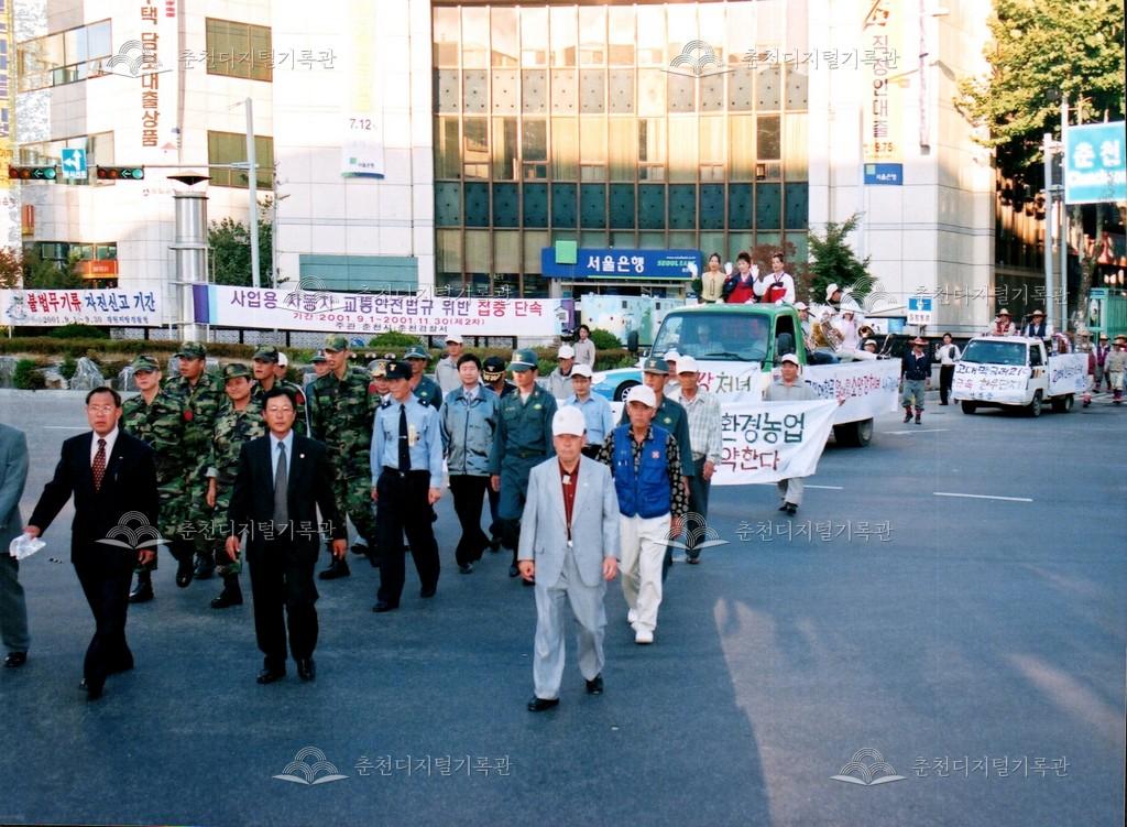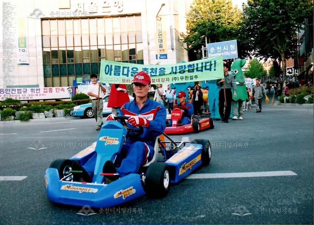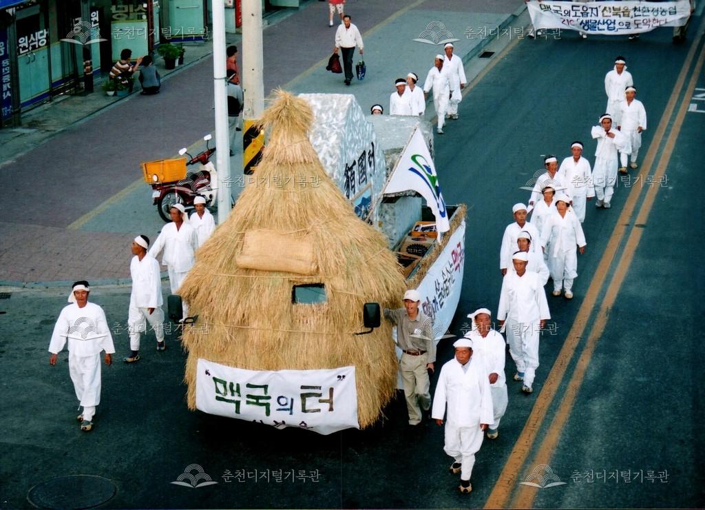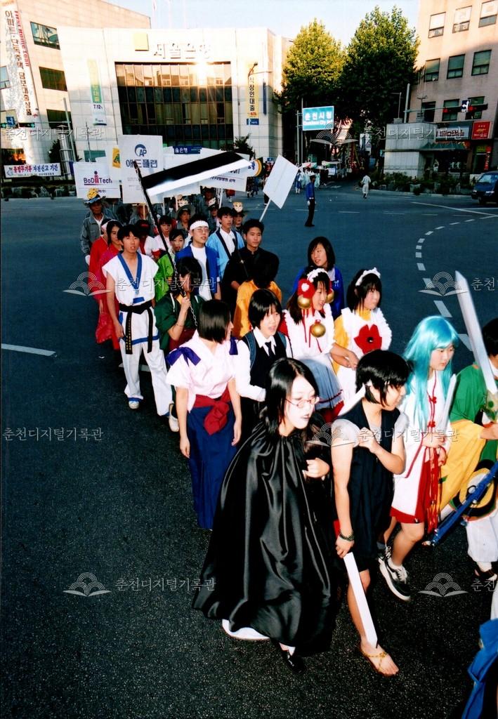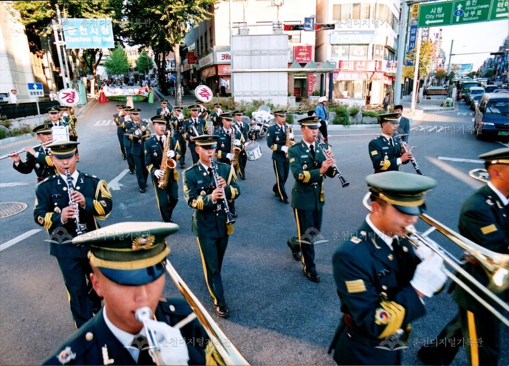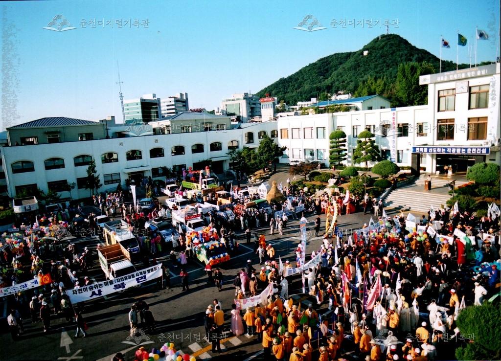 2001년 제24회 소양제(현재 소양강문화제)의 거리행진 사진이다. 춘천시청에서 공지천 시민공원(현재 의암공원)까지 농악단, 취타대, 군악대, 가장행렬 등 다양한 길놀이를 하며 행진했다.