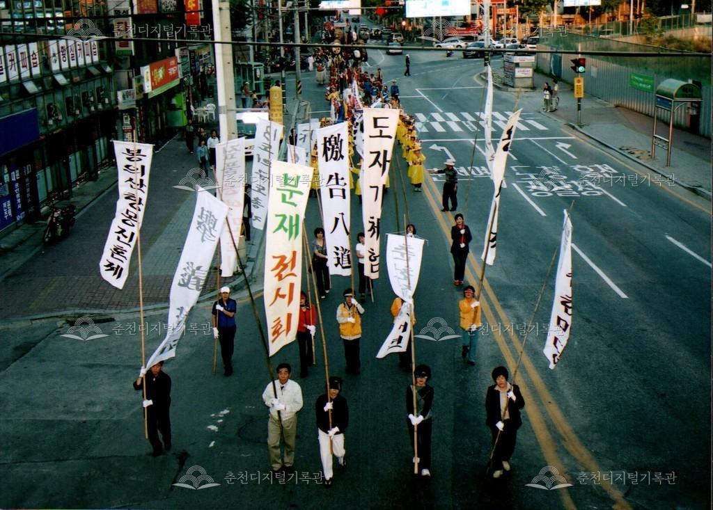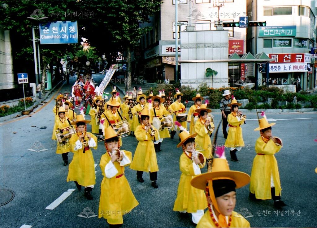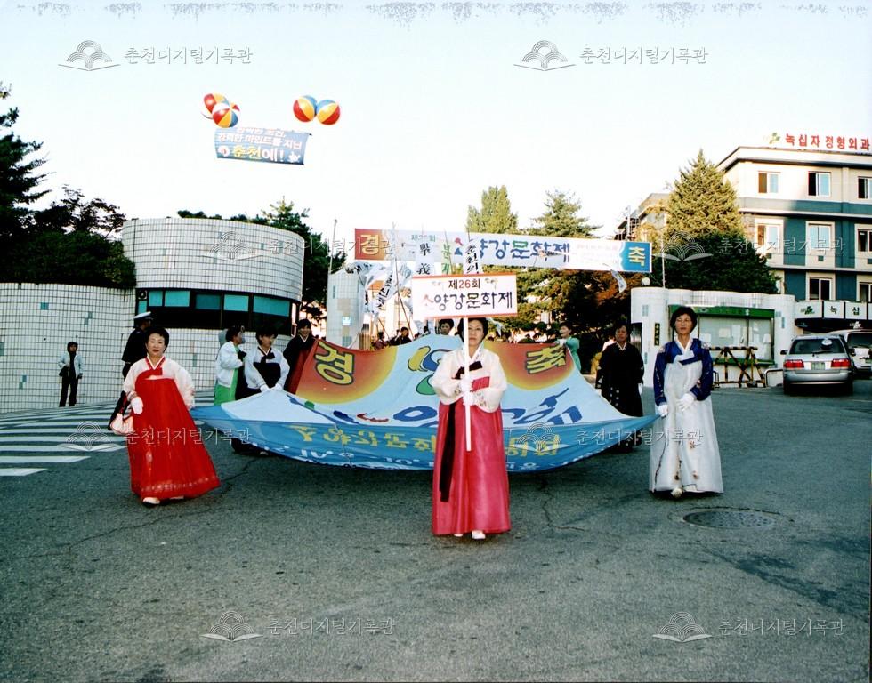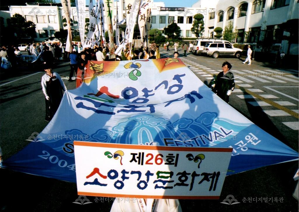 2004년 제26회 소양강문화제의 거리행진 사진이다. 춘천시청에서 출발하여 공지천 시민공원(현재 의암공원)까지 가장행렬, 사물놀이, 취타대 연주 등, 길놀이를 하며 행진하였다.