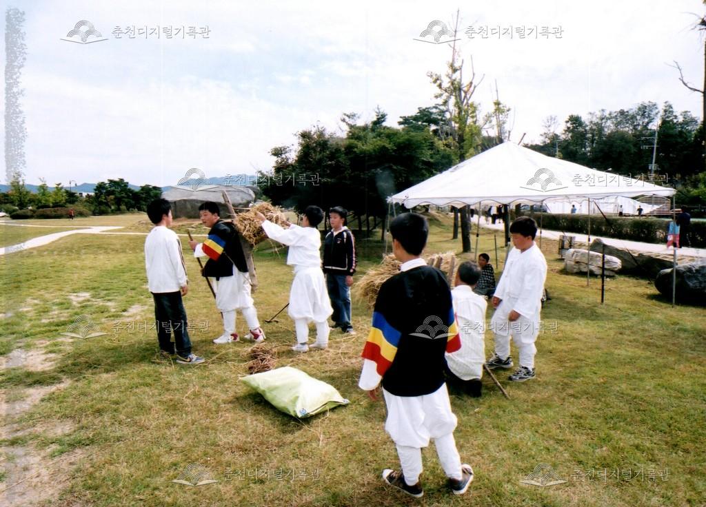 제26회 소양강문화제 전통문화체험 사진 등록번호 00003038 생산일자 2004.10.09 생산지역 춘천시 삼천동 생산자 춘천문화원 수집처 춘천문화원 소장자 춘천학연구소 내용 2004년 제26회 소양강문화제의 전통문화체험 사진이다. 지게 체험장에서 지게를 지고 있는 학생들의 모습이다. 사용안내 비상업적 이용만 가능|©춘천디지털기록관 상업적 사용·수정·재배포는 저작권자 동의 필요 다운로드 목록보기
