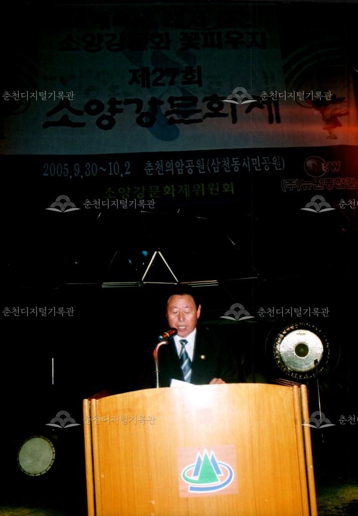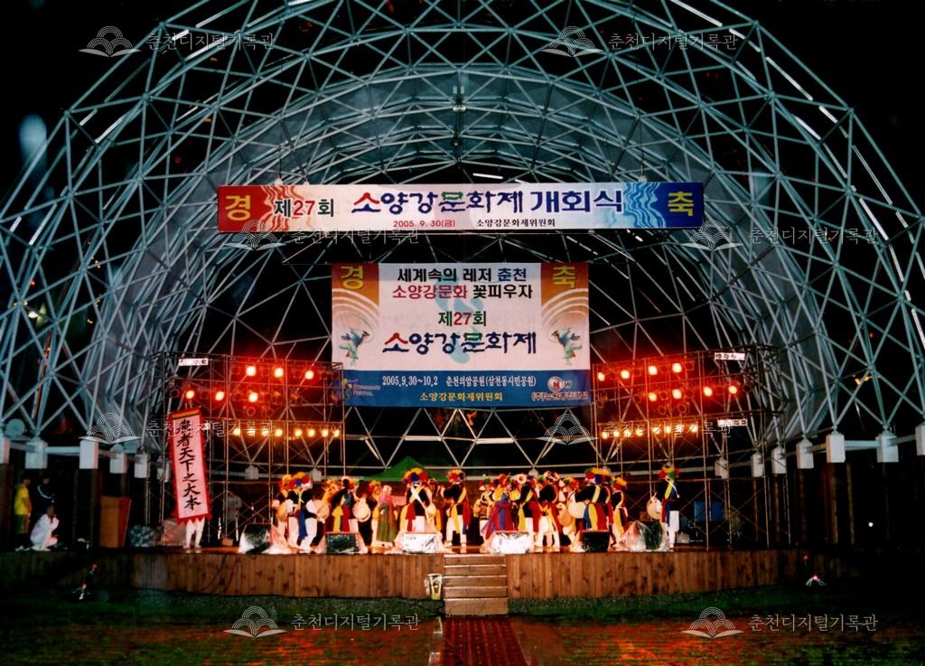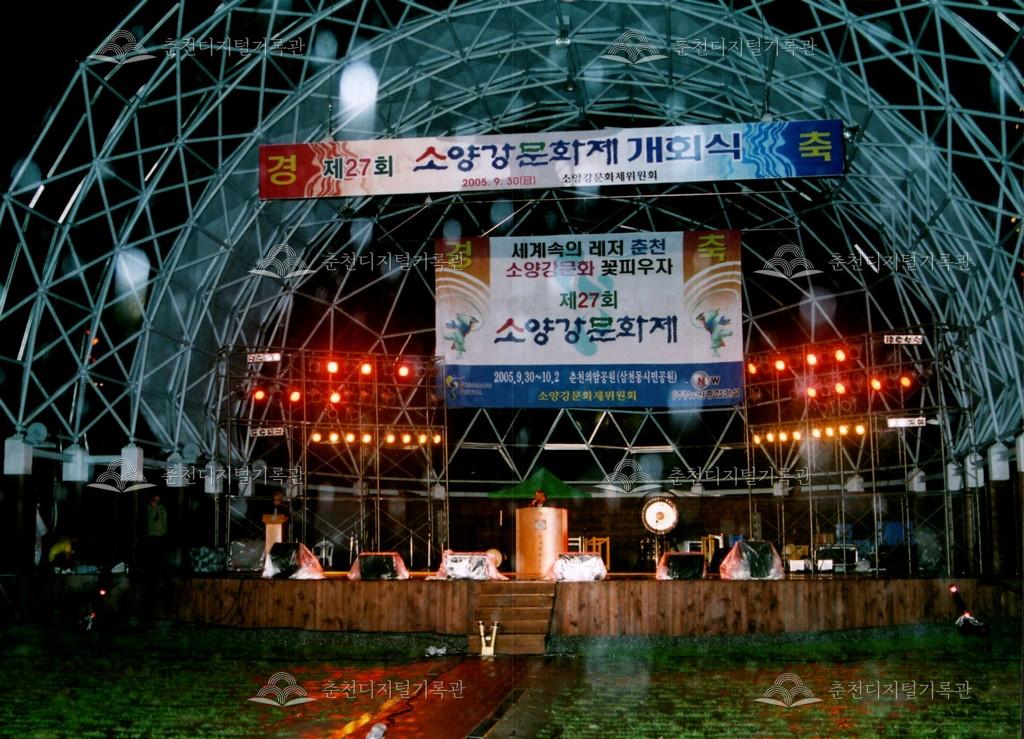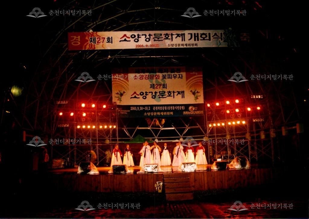 2005년 제27회 소양강문화제의 개회식 사진이다. 매년 행사 이튿날 오전에 진행되었던 개회식이 전야제인 첫째 날 저녁에 진행되었다.