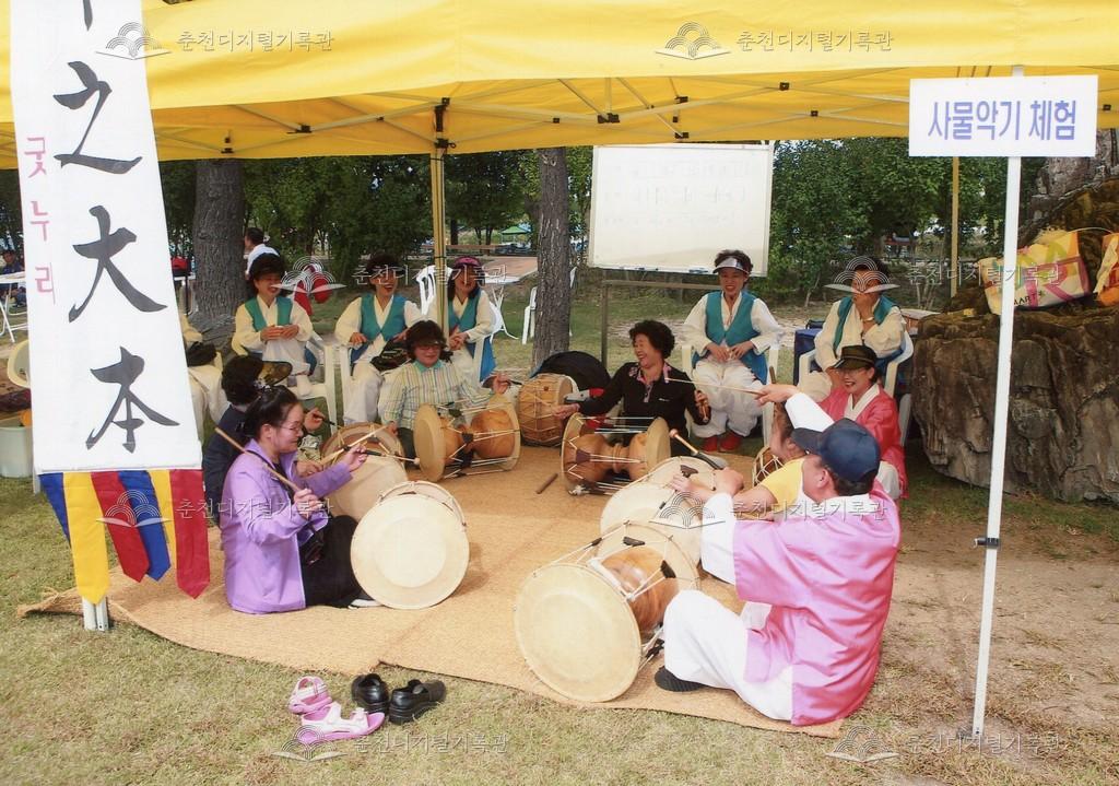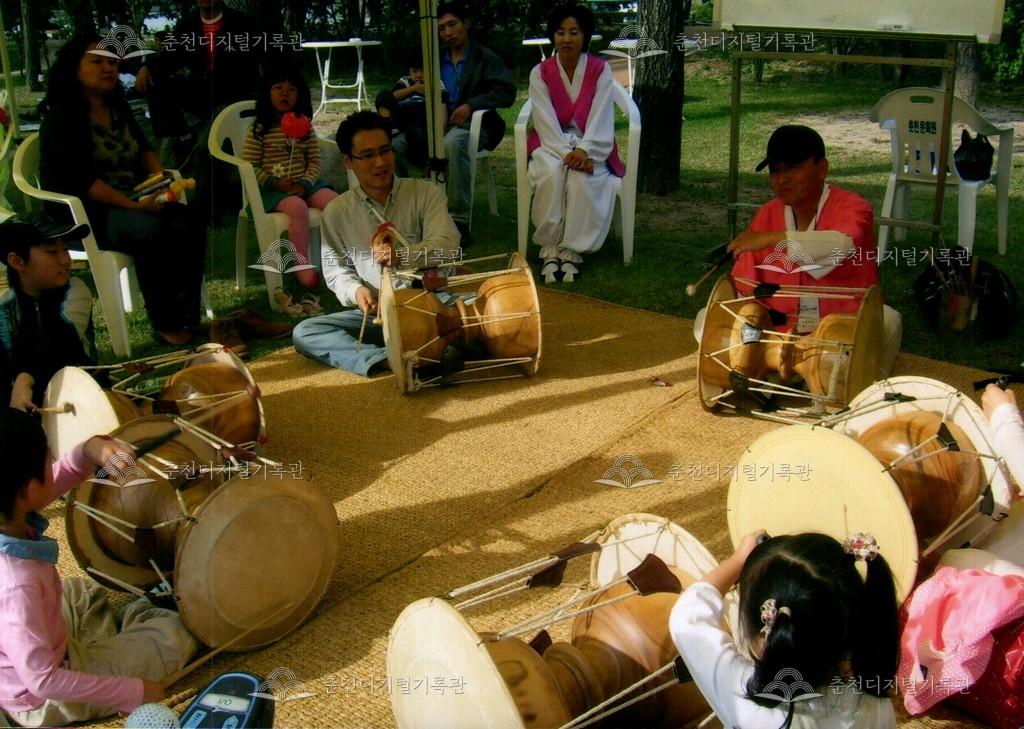 2008년 제30회 소양강문화제의 체험장 사진이다. 사물악기 체험장의 모습이다.