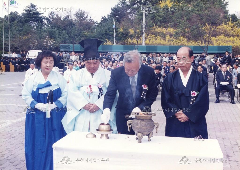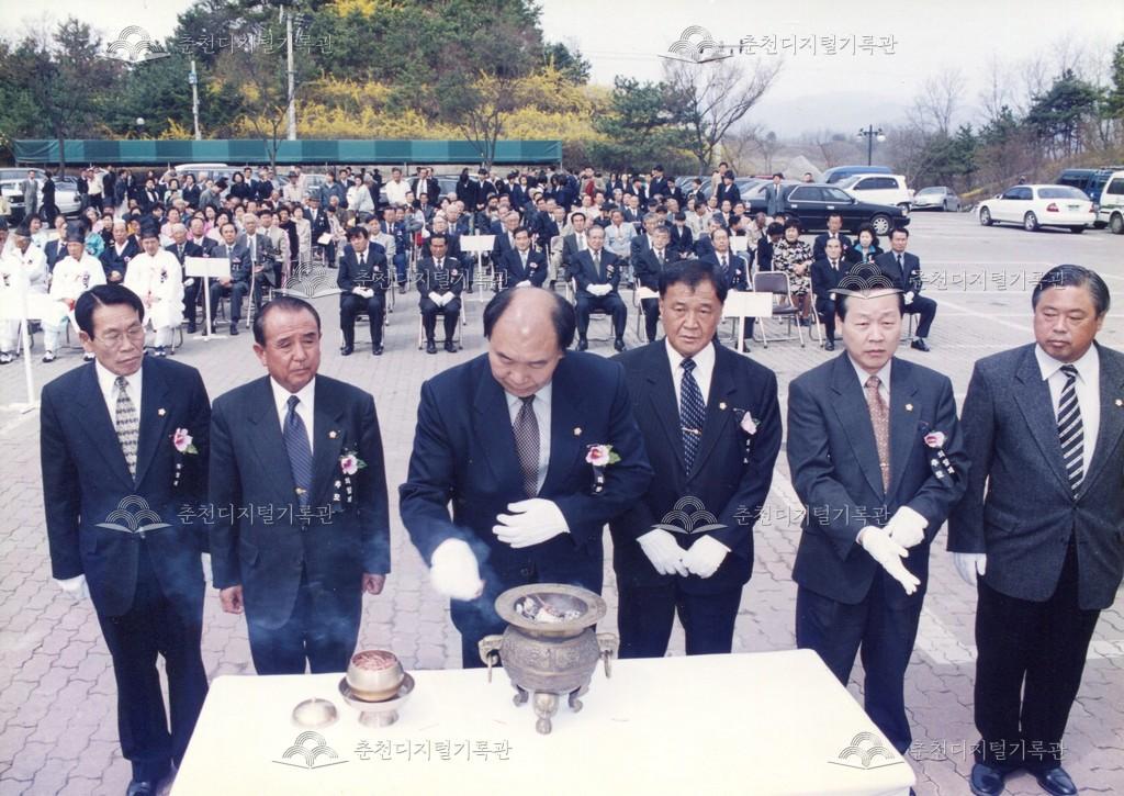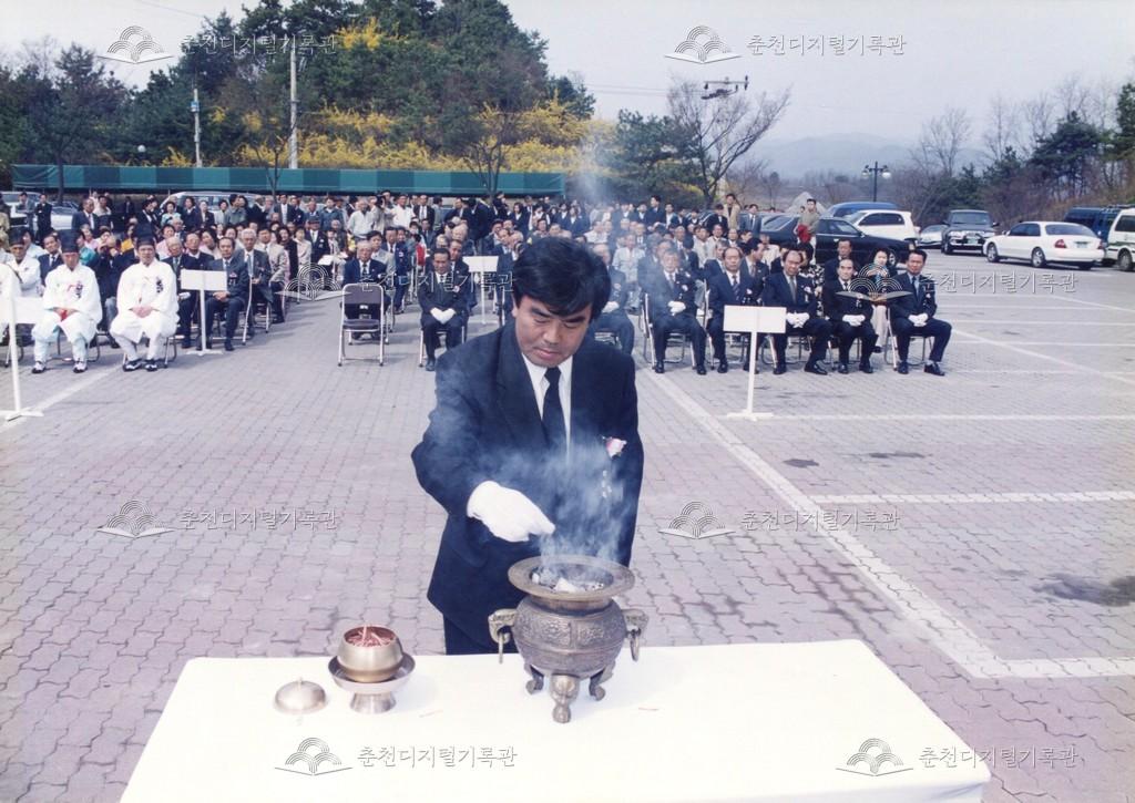 제16회 의암제 사진 등록번호 00003372 생산일자 2000.04.12 생산지역 춘천시 삼천동 생산자 춘천문화원 수집처 춘천문화원 소장자 춘천학연구소 내용 2000년 제16회 의암제 사진이다. 분향을 하는 이대근 춘천문화원장(첫 번째 사진), 류연익 광복회 강원도지부장(세 번째 사진), 춘천시의회 의원(네 번째 사진)과 여러 내빈의 모습이 보인다. 자세히 보기 닫기 사용안내 비상업적 이용만 가능|©춘천디지털기록관 상업적 사용·수정·재배포는 저작권자 동의 필요 다운로드 목록보기