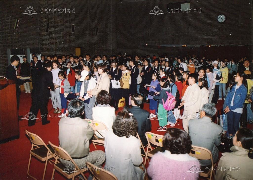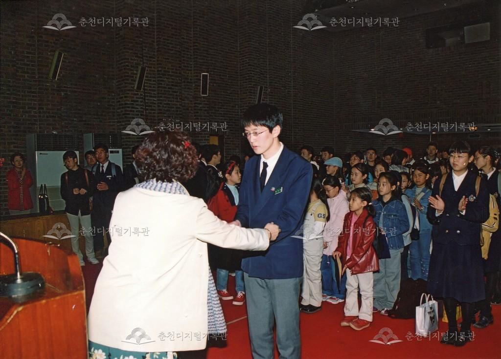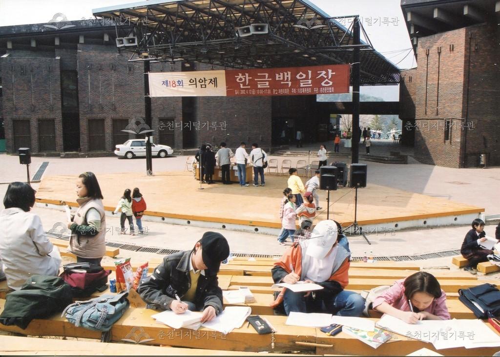 제18회 의암제 한글백일장 사진 등록번호 00003391 생산일자 2002.04.12 생산지역 춘천시 삼천동 생산자 춘천문화원 수집처 춘천문화원 소장자 춘천학연구소 내용 2002년 제18회 의암제 중 한글 백일장 사진이다. 춘천시어린이회관(현재 KT&G 상상마당 춘천 아트센터)에서 진행되었다. 글을 쓰는 학생들과 시상을 하는 모습이 보인다. 자세히 보기 닫기 사용안내 비상업적 이용만 가능|©춘천디지털기록관 상업적 사용·수정·재배포는 저작권자 동의 필요 다운로드 목록보기