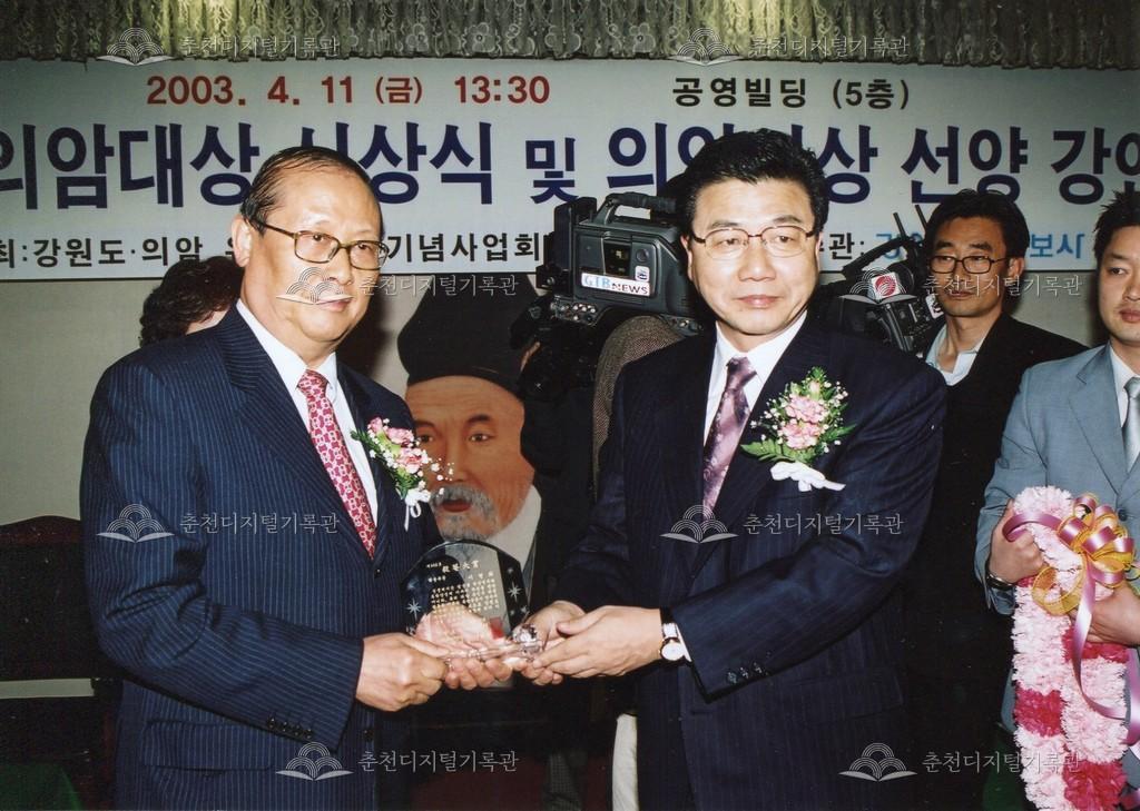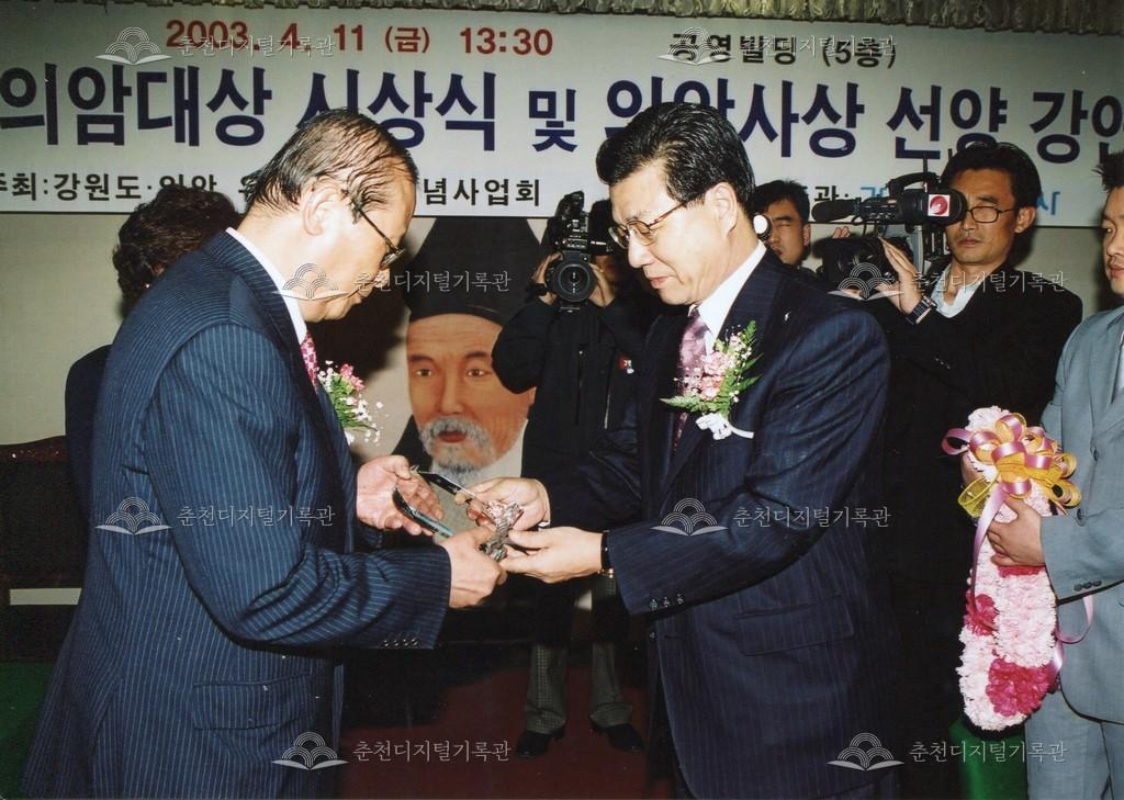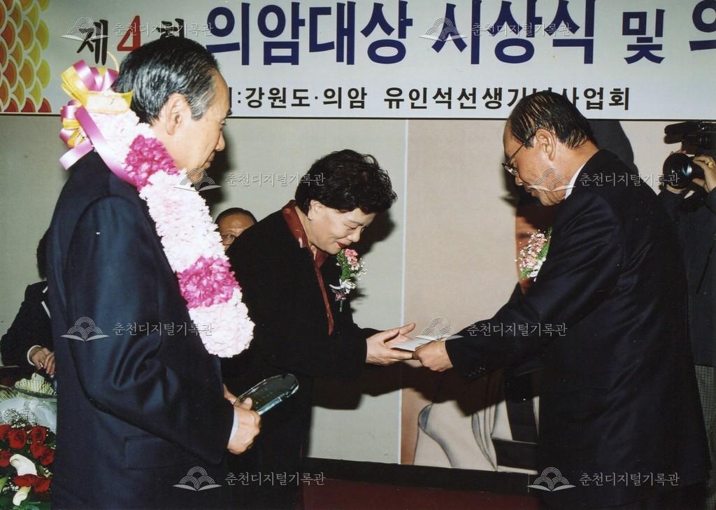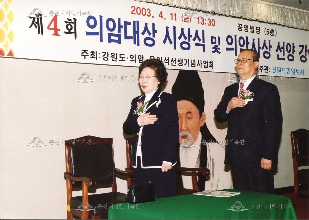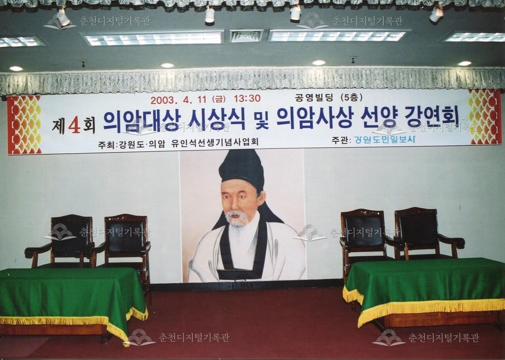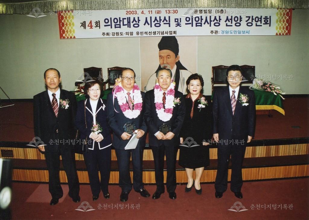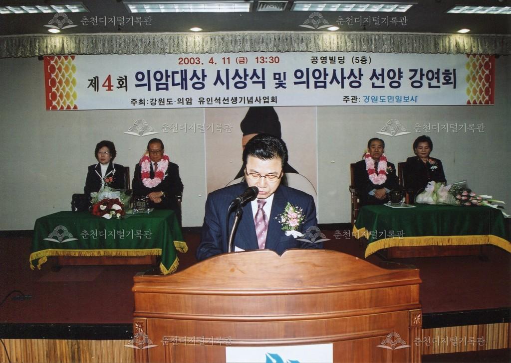 제4회 의암대상 시상식 및 의암사상 선양 강연회 사진 등록번호 00003395 생산일자 2003.04.11 생산지역 춘천시 소양동 중앙로1가 생산자 춘천문화원 수집처 춘천문화원 소장자 춘천학연구소 내용 2003년 제4회 의암대상 시상식 및 의암사상 선양 강연회의 사진이다. 중앙로1가 공영빌딩(현재 도청제2별관) 5층에서 진행되었다. 자세히 보기 닫기 사용안내 비상업적 이용만 가능|©춘천디지털기록관 상업적 사용·수정·재배포는 저작권자 동의 필요 다운로드 목록보기