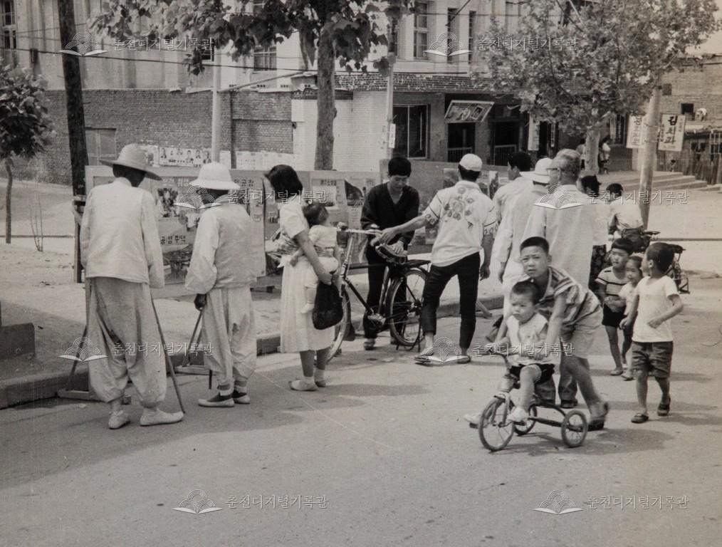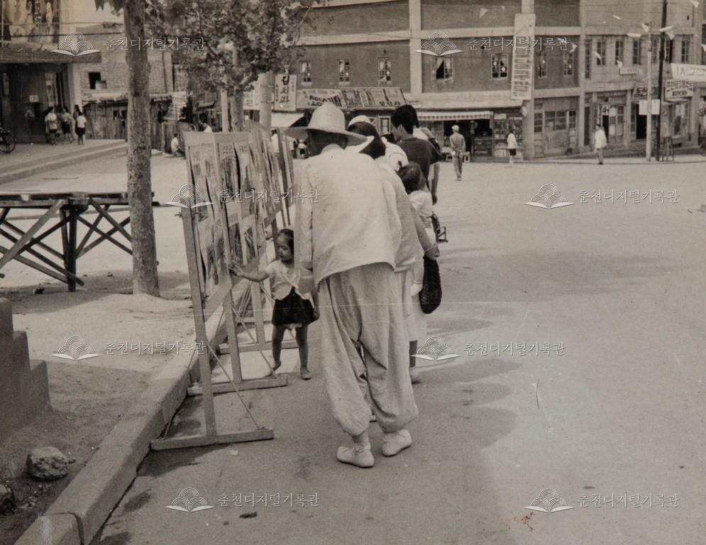 1960년대 거리 전시 사진 등록번호 00003665 생산일자 미상 생산지역 춘천시 조양동 생산자 춘천문화원 수집처 춘천문화원 소장자 춘천학연구소 내용 1960년대 거리 전시 사진이다. 조양동 옛 피카디리 극장 앞의 모습이다. 행사 월일은 6월 1일이다. 사용안내 비상업적 이용만 가능|©춘천디지털기록관 상업적 사용·수정·재배포는 저작권자 동의 필요 다운로드 목록보기