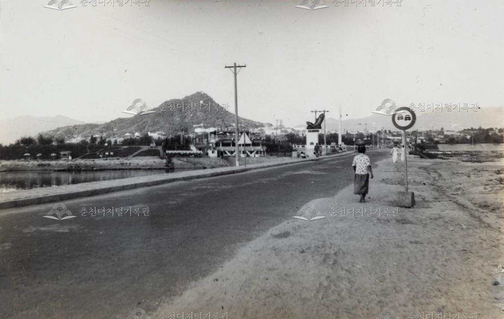 공지천 일대 등록번호 00003852 생산일자 미상 생산지역 춘천시 삼천동 생산자 미상 수집처 허일영 소장자 허일영 내용 삼천동에서 바라본 공지천과 봉의산 풍경이다. 공지천교 입구 붕어탑이 보인다. 사용안내 비상업적 이용만 가능|©춘천디지털기록관 상업적 사용·수정·재배포는 저작권자 동의 필요 다운로드 목록보기