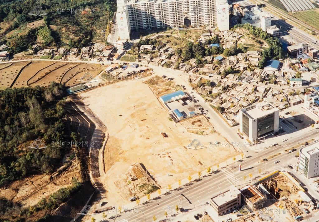 온의동 춘천시외버스터미널 이전 부지 모습이다. 2002년 근화동에서 온의동으로 이전했다. 1975년 건립된 근화동 시외버스터미널은 시설 노후화와 좁은 터미널 입지로 1985년에 온의동에 부지를 확정하고 이전계획을 추진했으나 시행되지 못했다. 1998년 10월 이전이 확정되어 터미널 신축공사에 들어가 2002년 준공하였다.