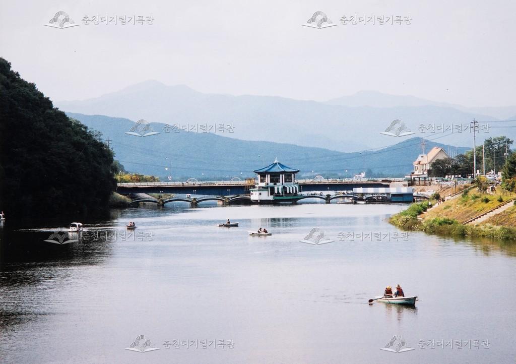 공지천 팔각정 풍경 등록번호 00003979 생산일자 미상 생산지역 춘천 근화동 생산자 미상 수집처 허일영 소장자 허일영 내용 근화동 공지천 풍경이다. 지금은 철거된 옛 공지천교 위 팔각정(호수의 집)의 모습과 보트, 오리배를 타는 시민의 모습이 보인다. 자세히 보기 닫기 사용안내 비상업적 이용만 가능|©춘천디지털기록관 상업적 사용·수정·재배포는 저작권자 동의 필요 다운로드 목록보기