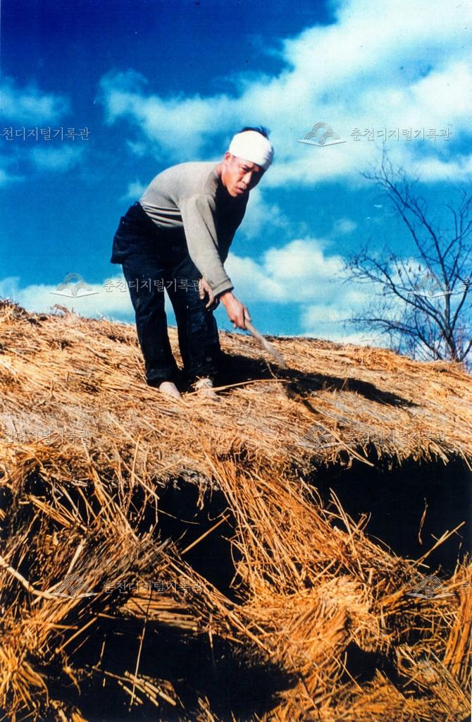 초가지붕 짚단 정리 등록번호 00004039 생산일자 미상 생산지역 춘천 생산자 토마스누조 수집처 춘천문화재단 소장자 춘천문화재단 내용 초가지붕 짚단 정리 <춘천시문화재단 토마스누조 기증 사진전 "한국전쟁 직후 춘천의 일상" > 사용안내 비상업적 이용만 가능|©춘천디지털기록관 상업적 사용·수정·재배포는 저작권자 동의 필요 다운로드 목록보기