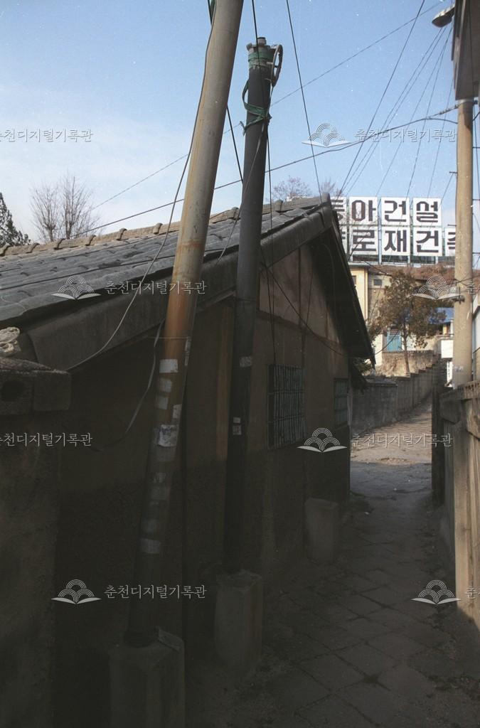 소양로2가 기와집골 골목 풍경 등록번호 00004147 생산일자 2005.12 생산지역 춘천 소양로2가 생산자 춘천시청 수집처 춘천시청 소장자 춘천시청 내용 소양로2가 기와집골 풍경, 문방구, 고려약국, 준상이네 집 등이 있다. 사용안내 비상업적 이용만 가능|©춘천디지털기록관 상업적 사용·수정·재배포는 저작권자 동의 필요 다운로드 목록보기
