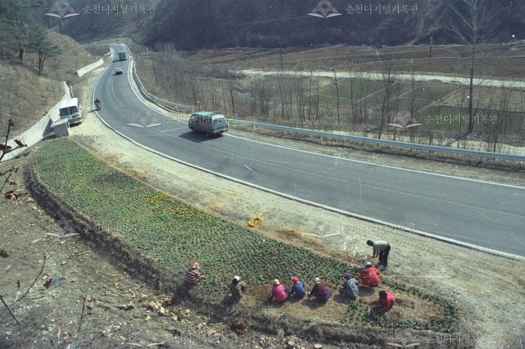 춘천-원주간 국도변 꽃길조성 등록번호 00004485 생산일자 1985 생산지역 춘천 동산면 원창리 생산자 춘천시청 수집처 춘천시청 소장자 춘천시청 내용 동산면 원창리 원창고개 주변 춘천-원주간 국도변 꽃길조성 사업 사용안내 비상업적 이용만 가능|©춘천디지털기록관 상업적 사용·수정·재배포는 저작권자 동의 필요 다운로드 목록보기
