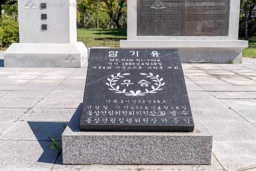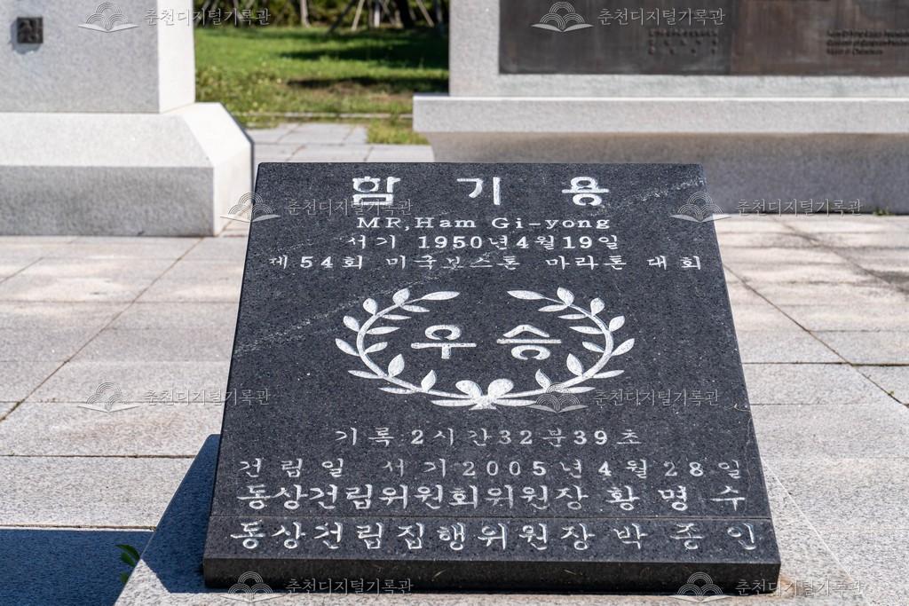 함기용 선수는 1950년 제54회 보스톤마라톤대회에 참가하여 우승하였다. 춘천시는 함기용 선수의 업적을 기념하기 위하여 춘천송암스포츠타운 인근에 함기용 마라톤 세계 재패 기념비를 세웠다. [출처] 강남동 마을지