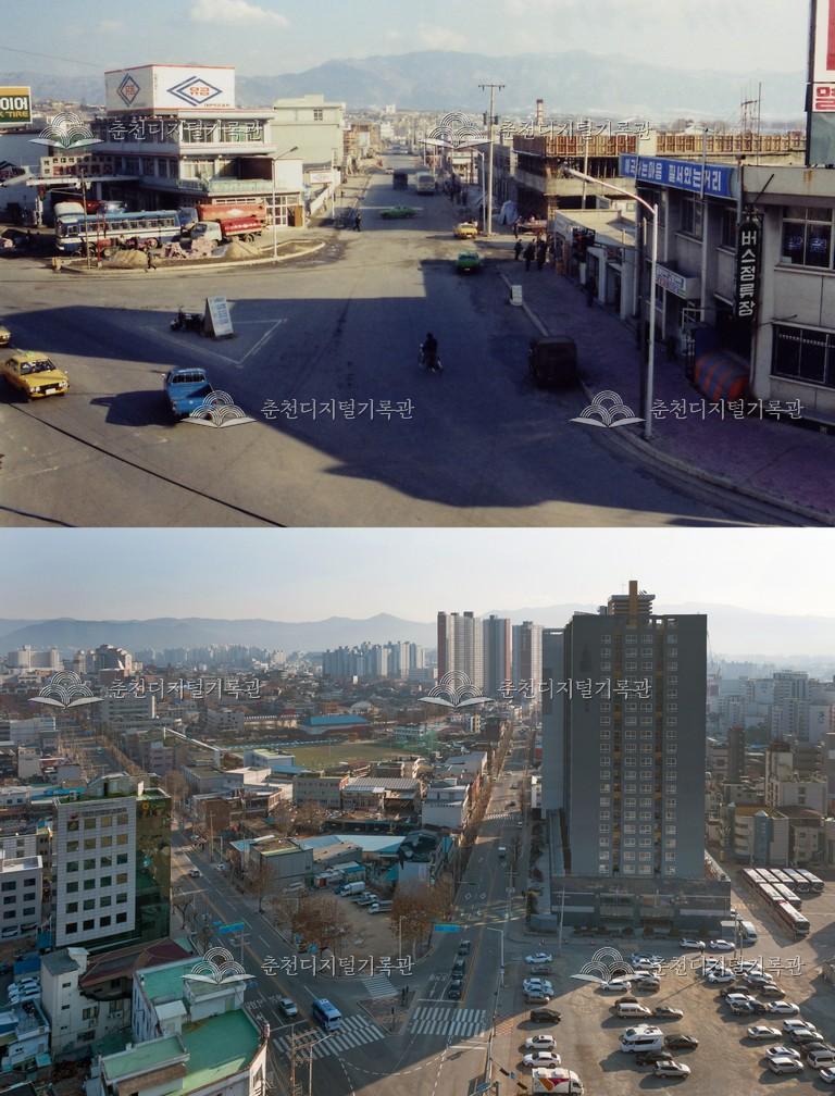 아래 사진: 춘천L타워오피스텔, 옛 춘천시외버스터미널 부지 공터, 옛 현대주유소 부지 공터