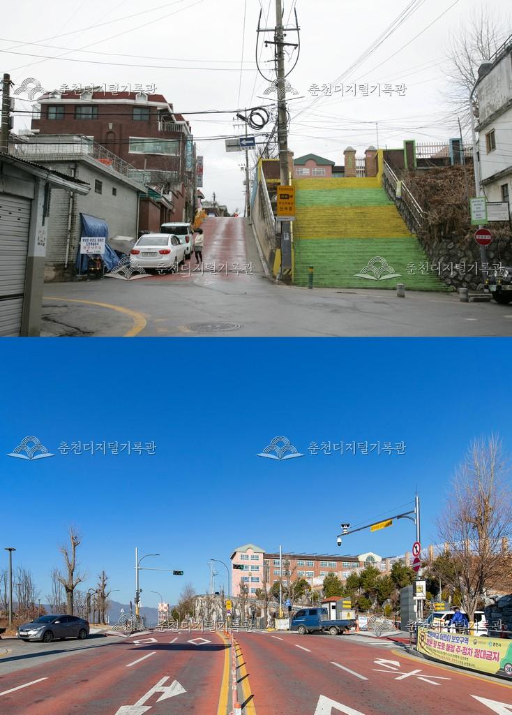 낙원동 비교 사진 등록번호 00001023 생산일자 2020.12 생산지역 춘천시 소양동 낙원동 생산자 춘천학연구소 수집처 미상 소장자 춘천학연구소 내용 낙원동 비교 사진. 위 사진: 중앙초등학교 입구 43계단 아래 사진: 현재 중앙초등학교 입구 [관련 기사] 「가슴에 손수건 달고 "앞으로 나란히" 꼬맹이들의 첫 등교」 http://www.kwnews.co.kr/nview.asp?s=601&aid=220032500000 자세히 보기 닫기 사용안내 비상업적 이용만 가능|©춘천디지털기록관 상업적 사용·수정·재배포는 저작권자 동의 필요 다운로드 목록보기