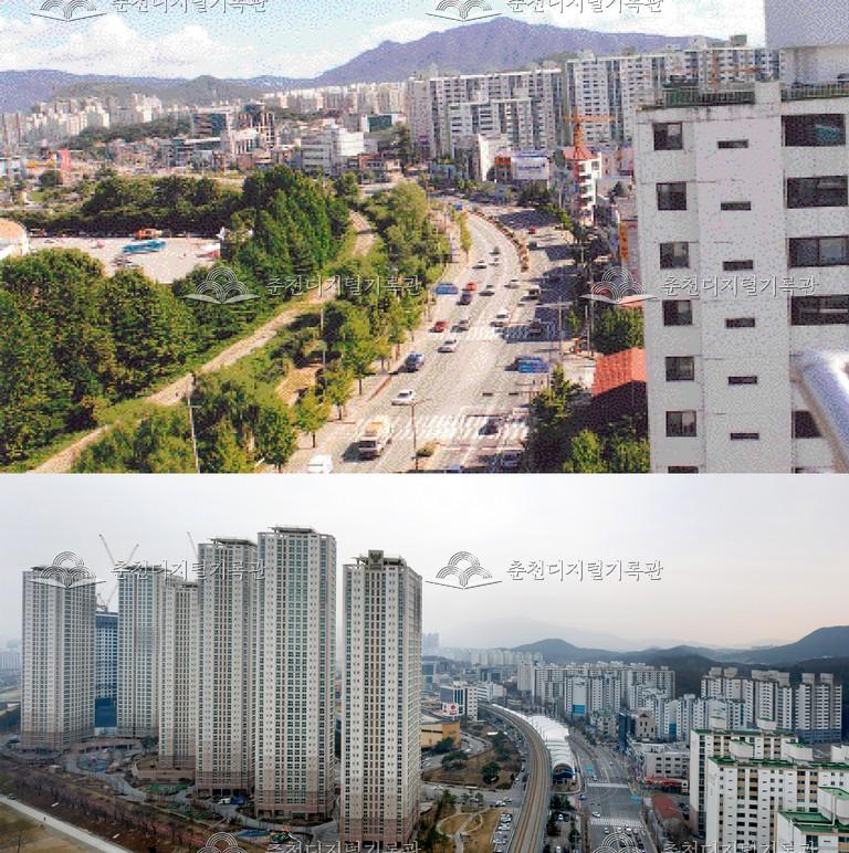 춘천의 어제와 오늘-춘천시 전경 비교 사진