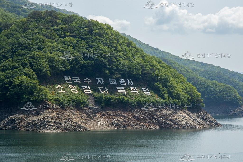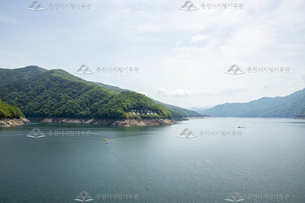 1973년 완공된 소양강다목적댐(소양강댐)으로 조성된 소양호의 사진이다.
