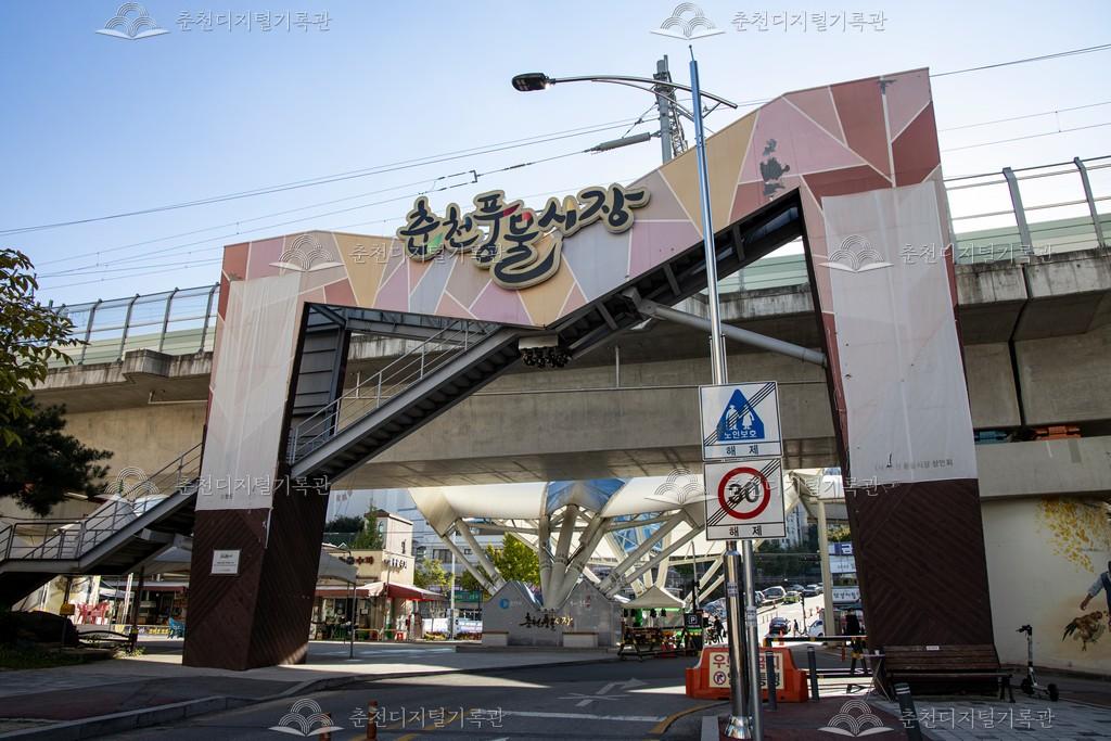 풍물시장은 지난 1989년 정부의 도심 노점상 정비에 따라 중앙로 일대 등 주요 간선도로변에 있던 노점상이 약사천 복개 공간에 자리를 잡으면서 자연스럽게 형성됐다. 이후 2일과 7일에 맞춰 '5일장'의 정취를 되살리며 춘천시민의 사랑을 받아오다 춘천시가 옛 도심을 가로질렀던 약사천을 복원한다는 사업에 따라 상인과 합의로 이전을 결정했다. 이전 추진 당시 춘천시는 철도시설공단과 하부공간 부지에 대해 사용허락을 받는 등 일사천리로 사업을 진행했지만, 상인들과 장소 이전 문제로 협상에 난항을 겪기도 했다. 이전하는 풍물시장은 올해말 완공하는 온의사거리~호반교 간 고가(高架)로 설치된 경춘선 복선전철 하부공간 인근 강남동 온의사거리에서 공지천 호반교까지 700여m 구간에 13동 143개의 점포, 관리사무실, 화장실, 주차장(246면)을 갖추고 있다.
