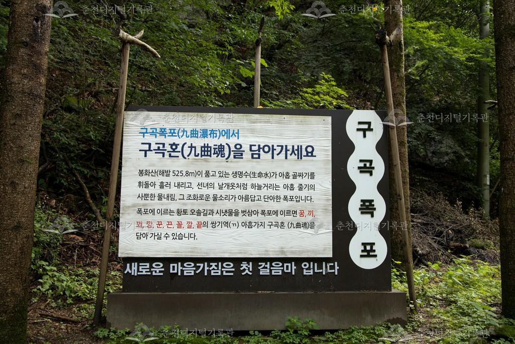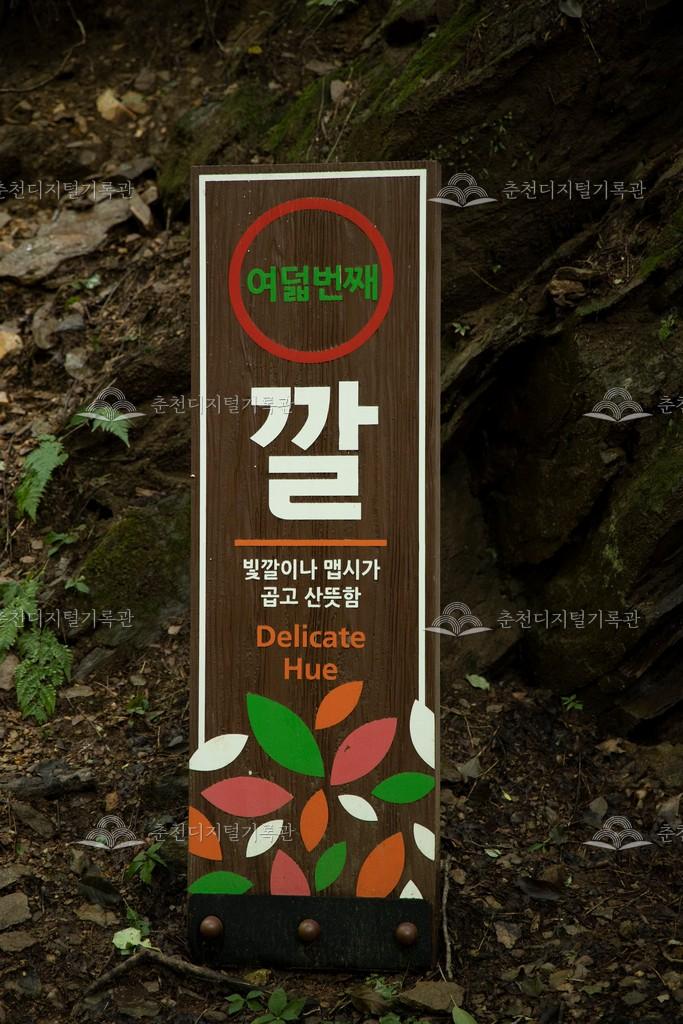 구곡폭포 구곡혼 이정표 등록번호 00001258 생산일자 2022.08.10 생산지역 춘천시 남산면 강촌리 생산자 춘천학연구소(신정인) 수집처 미상 소장자 춘천학연구소 내용 남산면 강촌리에 있는 구곡폭포 구곡혼 이정표 사진이다. 폭포에 이르는 황토 오솔길과 시냇물을 벗삼아 폭포에 이르면 꿈, 끼, 꾀, 깡, 꾼, 끈, 꼴, 깔, 끝의 쌍기역 아홉가지 구곡혼을 담아 갈 수 있다고 한다. [출처] 구곡혼 안내문 자세히 보기 닫기 사용안내 비상업적 이용만 가능|©춘천디지털기록관 상업적 사용·수정·재배포는 저작권자 동의 필요 다운로드 목록보기