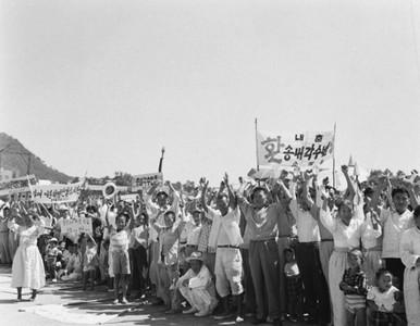 1961년 송요찬 내각수반이 춘천 시찰을 위해 방문한 당시 촬영한 사진이다. 춘천공설운동장(현재 춘천고등학교 운동장)에서 방문 환영식을 하는 모습이다.