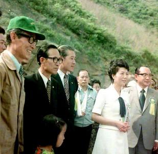 1974년에 촬영한 박정희 전 대통령의 영부인 육영수 여사의 소양호 방문 사진이다.