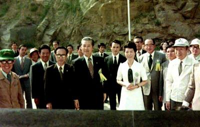 1974년에 촬영한 박정희 전 대통령의 영부인 육영수 여사의 소양호 방문 사진이다.