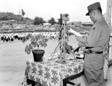 1961년에 촬영한 춘천시 재건국민운동촉진회 결성대회의 사진이다. 공설운동장(현재 춘천고등학교 운동장)에서 관계자가 연설을 하는 모습이다.