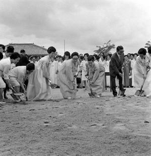 강원여성회관 건립기공식 사진 등록번호 00001997 생산일자 1968.07.03 생산지역 춘천시 죽림동 생산자 공보처 홍보국 사진담당관 수집처 국가기록원 소장자 국가기록원 내용 1968년에 촬영한 강원여성회관 건립기공식의 사진이다. 기공식에 참석한 박정희 전 대통령의 영부인 육영수 여사와 관계자들이 첫삽을 뜨는 모습이다. 해당 위치는 현재 약사명동행정복지센터가 자리하고 있다. 자세히 보기 닫기 사용안내 외부 제공 | 열람·다운로드는 원 기관 사이트 이용 ※ 저작권은 해당 기관에 있음 관련사이트 이동 목록보기