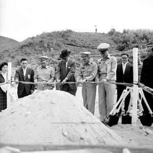 1961년에 촬영한 춘천수력발전소 기공식의 사진이다. 박정희 최고회의의장과 관계자가 테이프절단을 하고 있다.