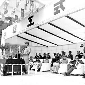 1961년에 촬영한 춘천수력발전소 기공식의 사진이다. 기공식에 참석한 박정희 최고회의의장이 보인다.