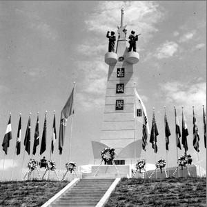 1955년 충렬탑 제막식의 사진이다. 7월 6일 이승만 대통령이 참석한 가운데 제막식이 진행되었다.