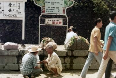 남산면의 강촌역 풍경이다. 기차를 기다리는 사람의 모습이 보인다. 안내판에 부착된 비네몬(유한양행 제조판매,1972년)광고를 통해 촬영시기는 1972년 이후로 추정된다.
