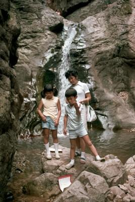 덕두원리 등선폭포에 관광을 온 가족의 사진이다.