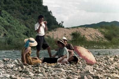 남산면 강촌리 하천가에서 촬영한 단체 사진이다. 피서를 하는 모습이다.